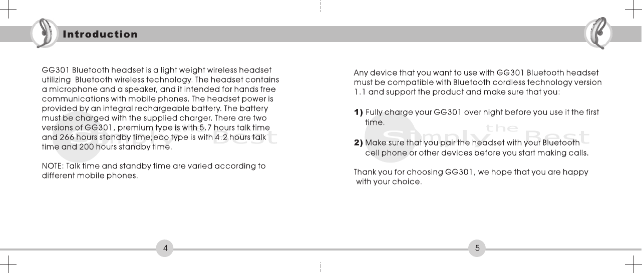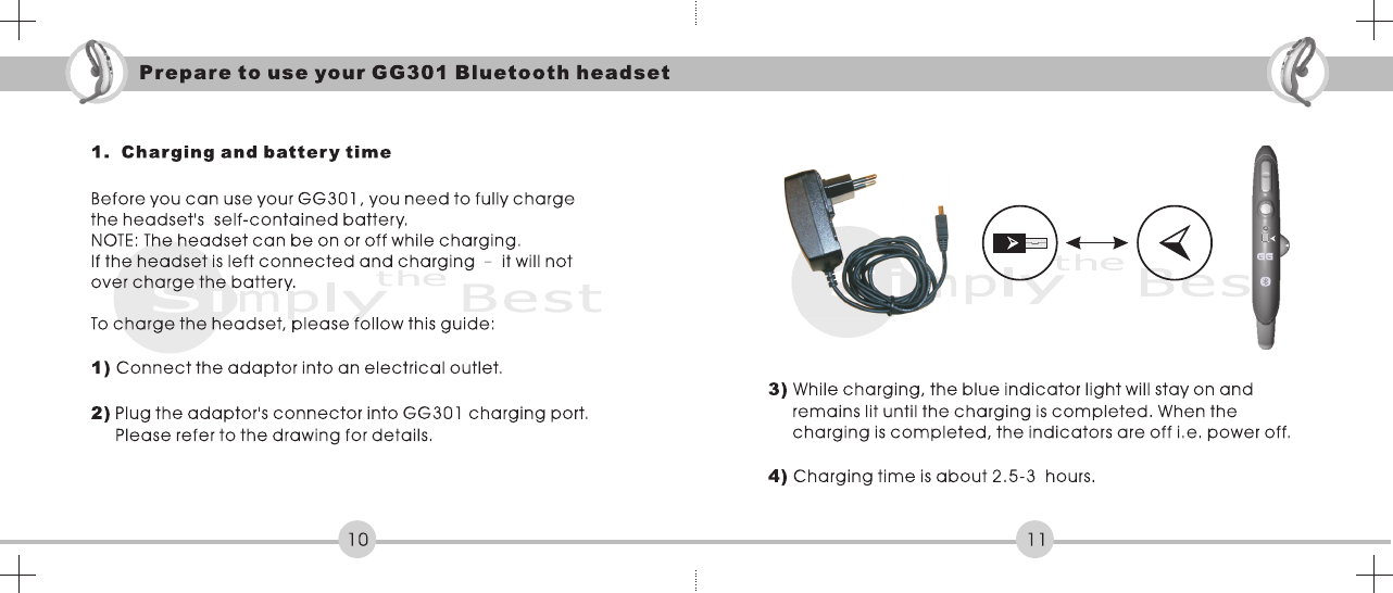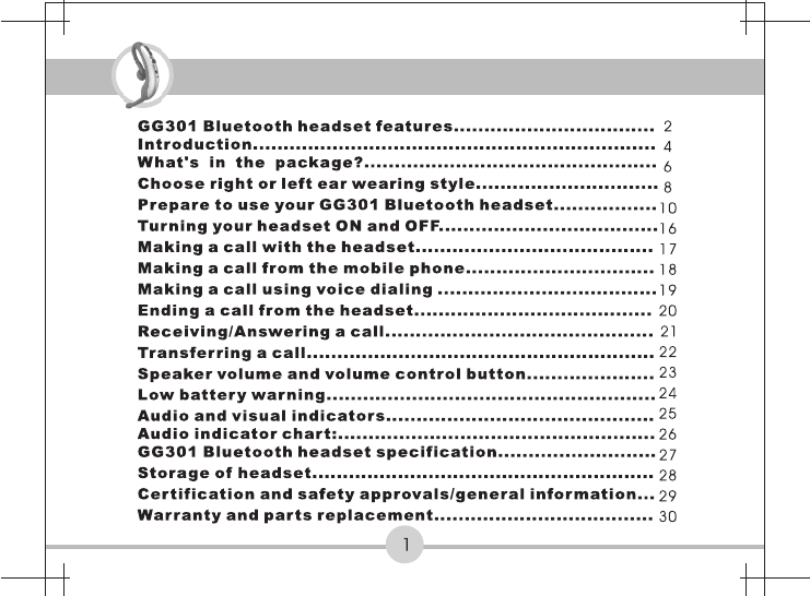 G G Telecom GG301 BLUETOOTH HEADSET User Manual