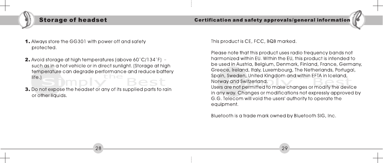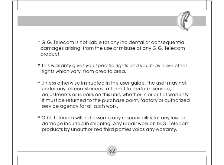G.G. Telecom (2002) Incorporated BLUETOOTH HEADSET Users Manual