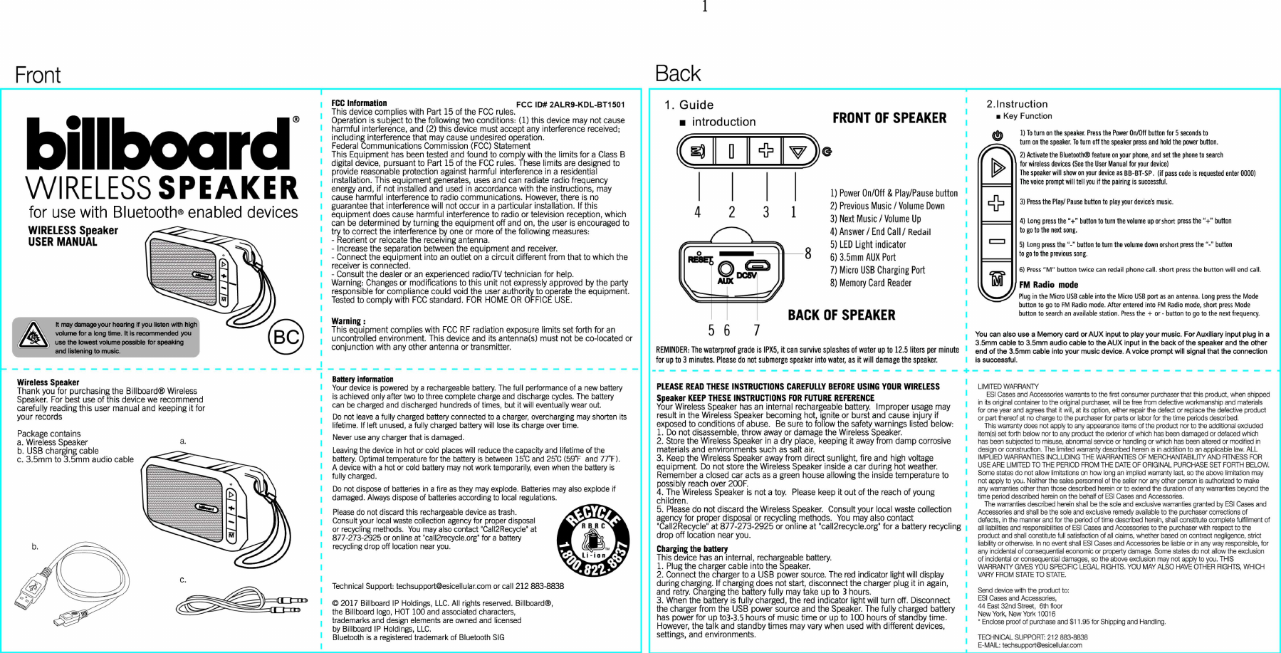 G KINDLY ELECTRONIC KDL-BT1501 WIRELESS SPEAKER User Manual 15 BB733 UserMan