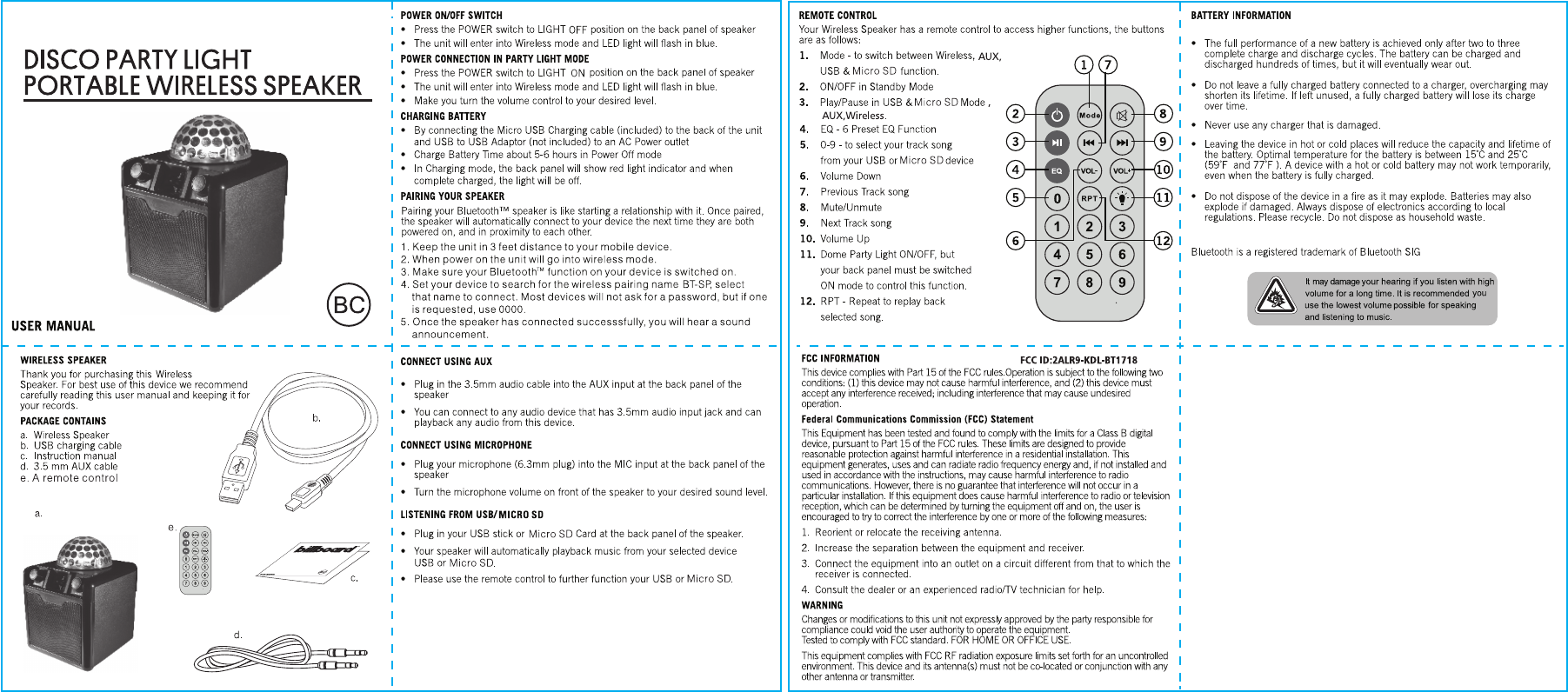 G KINDLY ELECTRONIC KDL-BT1718 Wireless speaker User Manual 1718