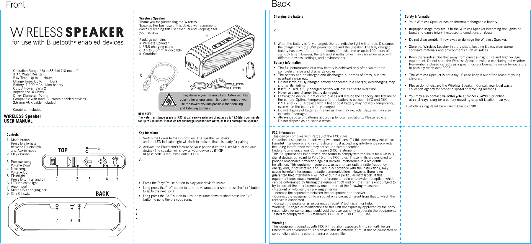 mode automatically, Press and hold “<-” and “+>” to change the volume. In the Auxiliary input