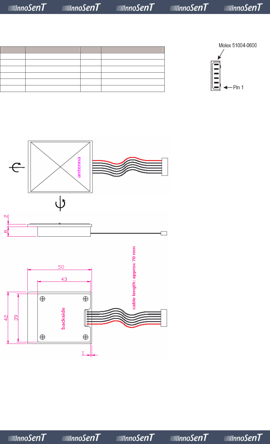 The sensor provides a 2 mm pitch 6 pin connector Molex P/N 51004-0600.