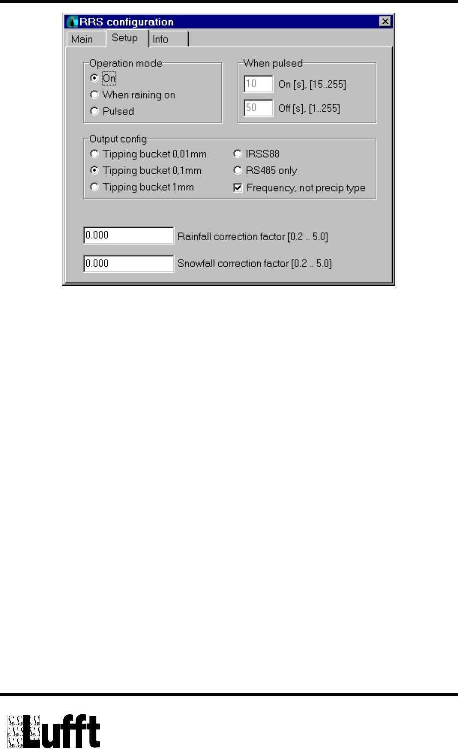 • Tipping bucket simulation with a resolution of 0,1mm (default setting)