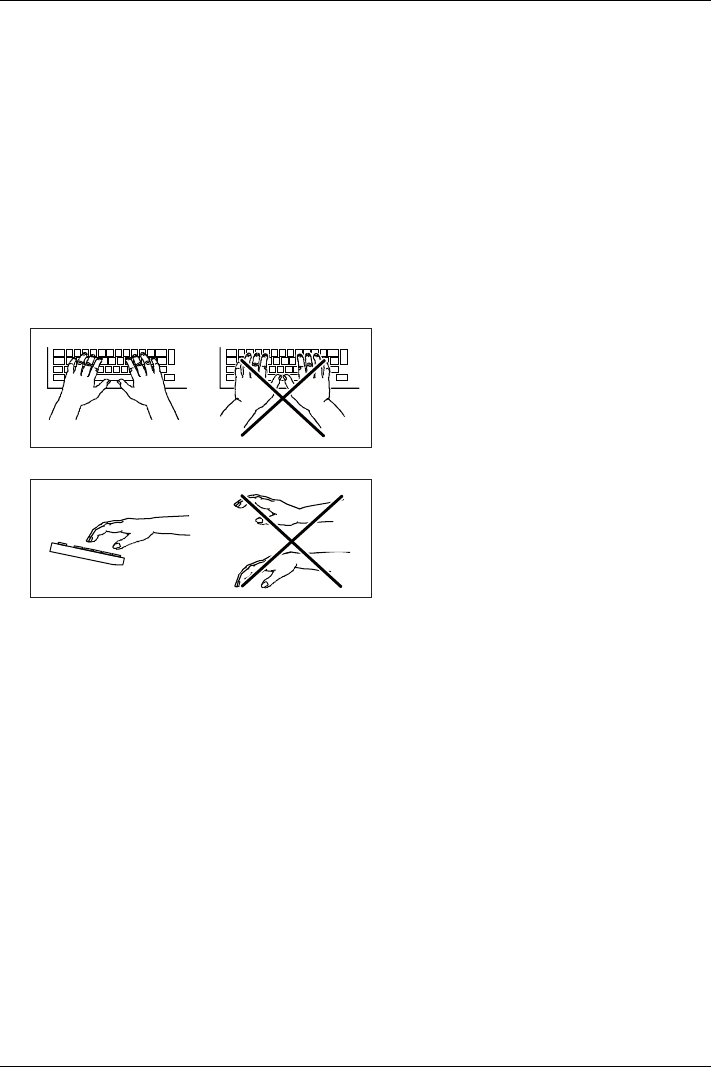 • Do not rest your hands on the balls of your thumbs while typing, and do not strike the keys too hard.
