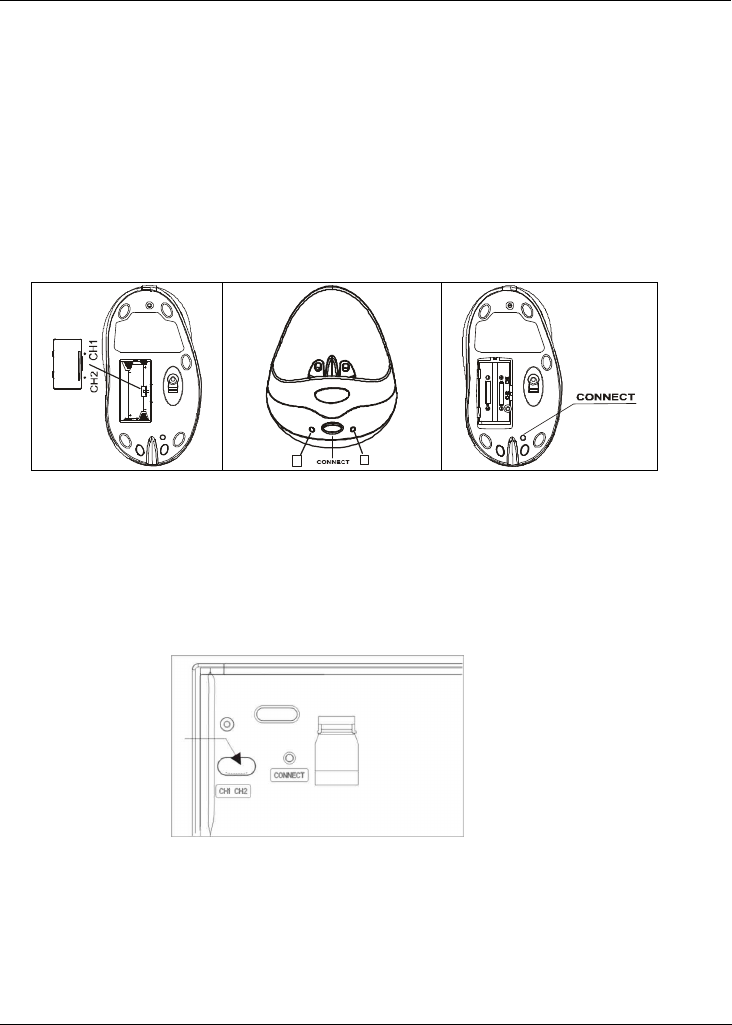 2. To set up the mouse wireless link, press CONNECT key on the bottom of the mouse.