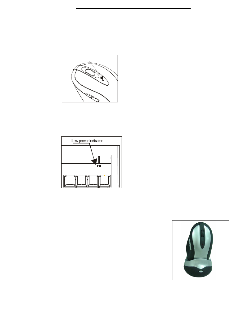 The cordless optical mouse uses two AAA rechargeable batteries.