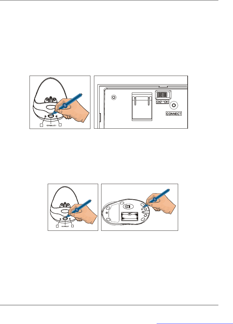 2. To set up the mouse wireless link, press CONNECT key on the bottom of the mouse.