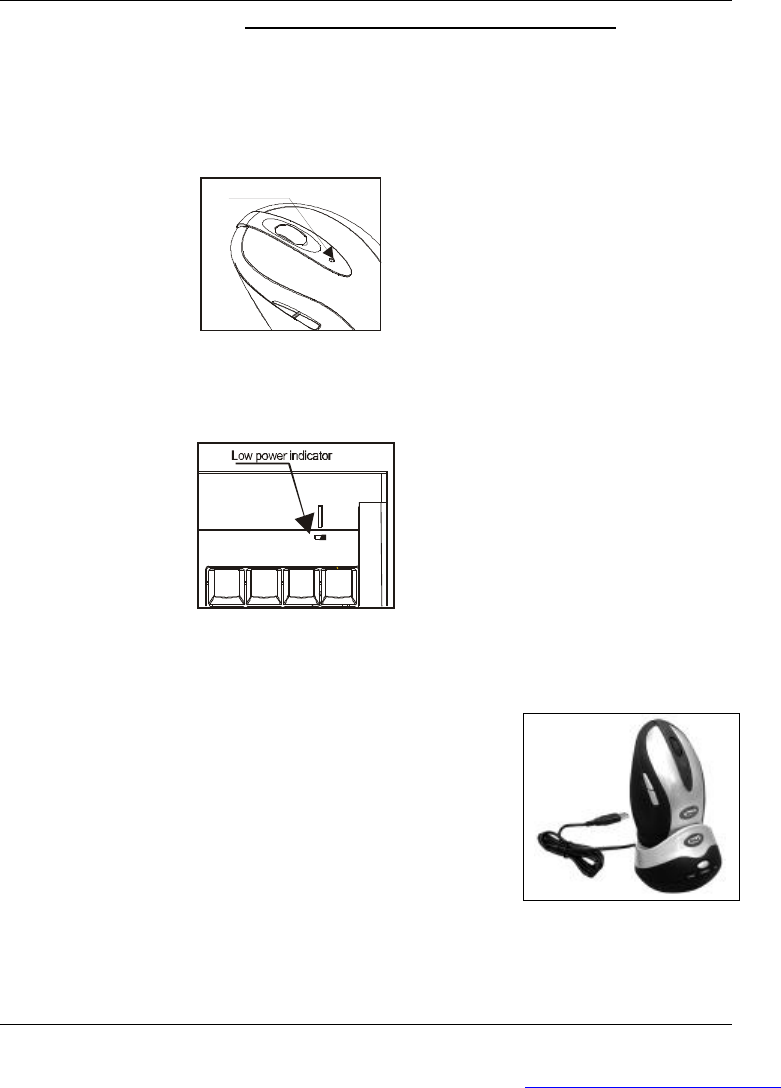 The cordless optical mouse uses two AAA rechargeable batteries.