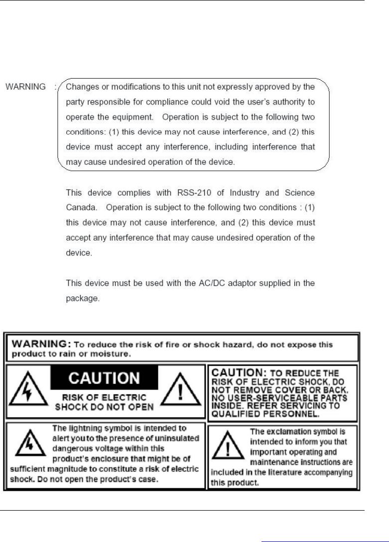 jack. The supplied adapter meets these specifications. Using an adapter that does not