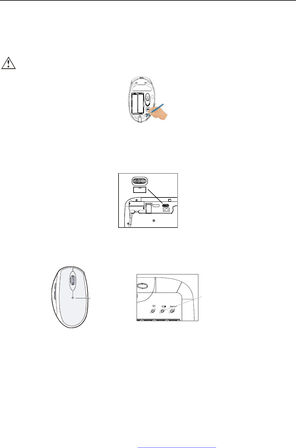 2、Insert the AA RECHARGEABLE batteries into the mouse battery compartments
