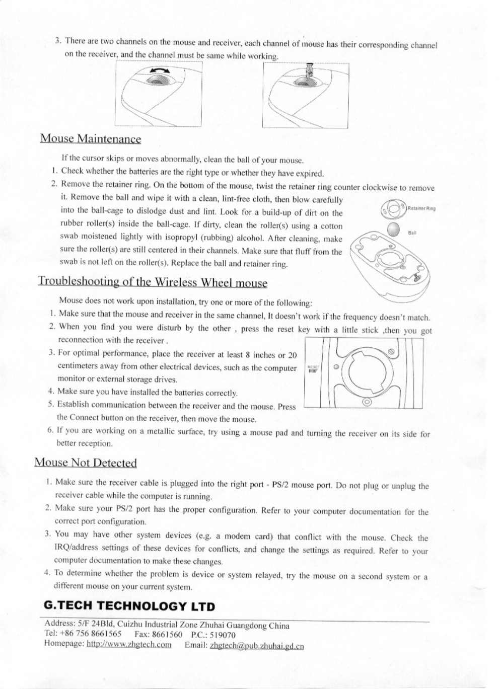 G.Tech Technology Ltd. Wireless Mouse users manual