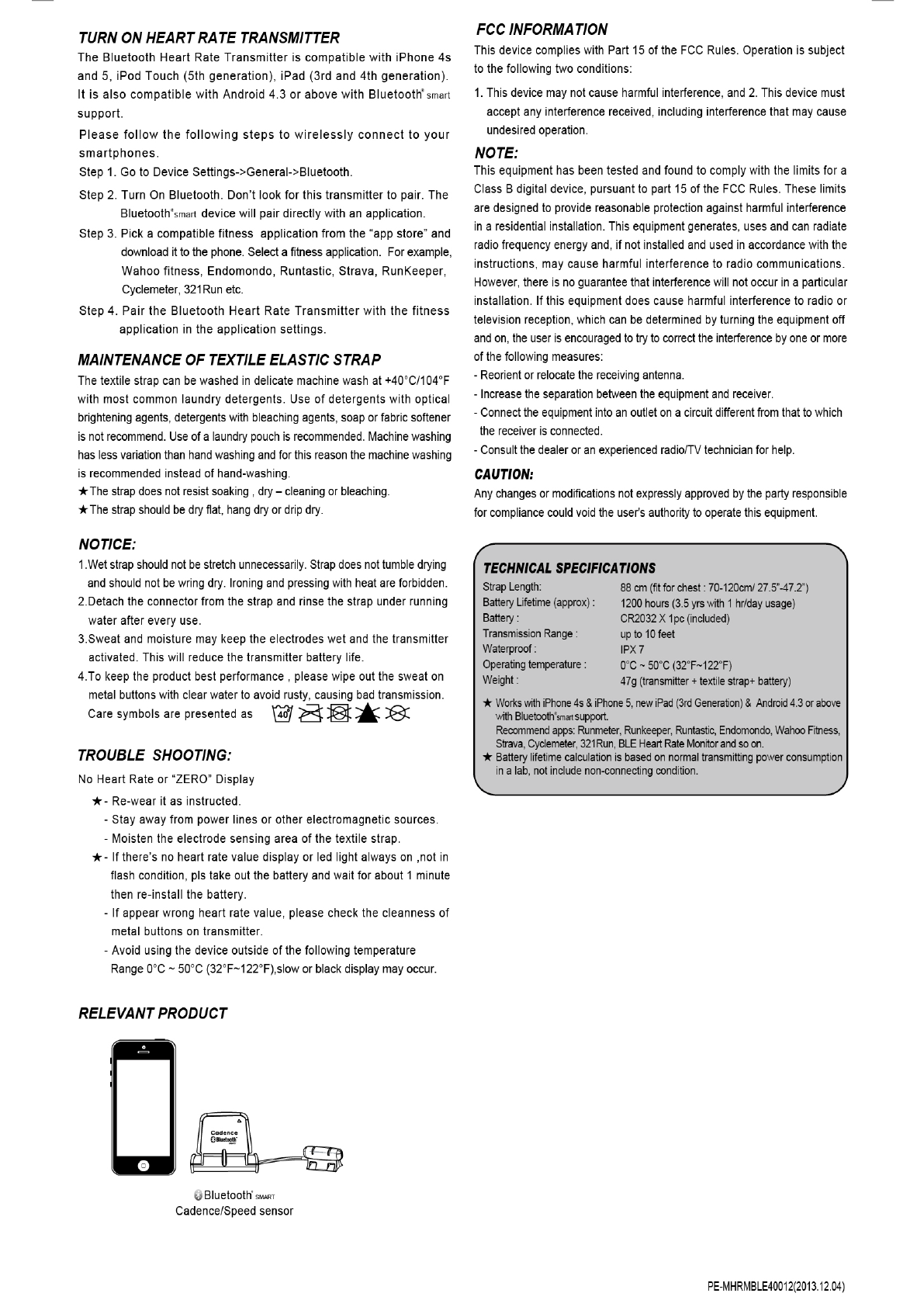 G pulse HRM200 BLE HEART RATE CHEST BELT User Manual