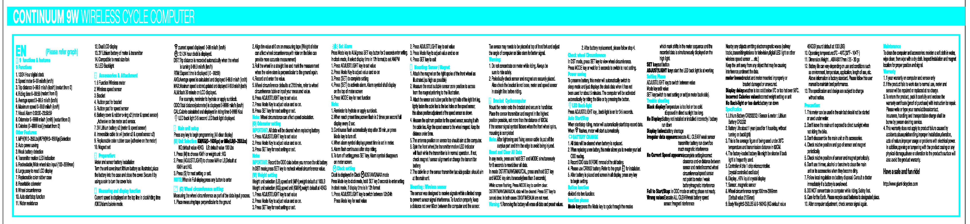 G.pulse International Co., Ltd. GIANT WIRELESS CYCLE COMPUTER OF CONTINUUM 9W Users Manual