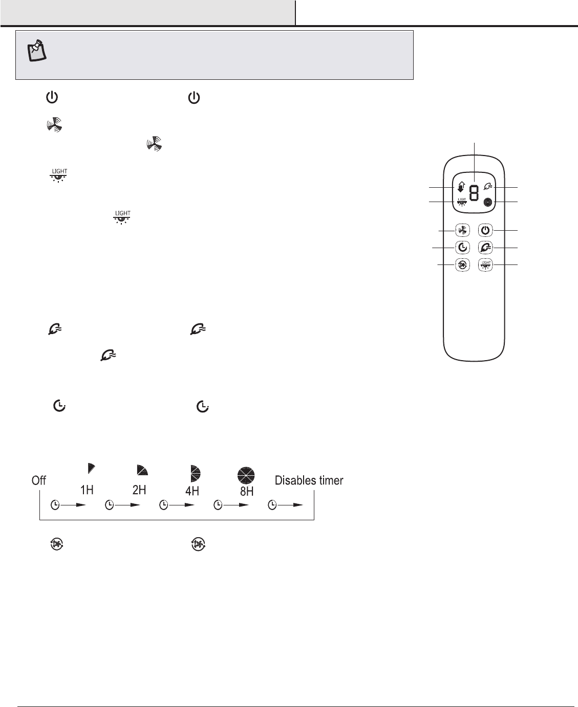 4. Fan button. - Press and release the button will activate the