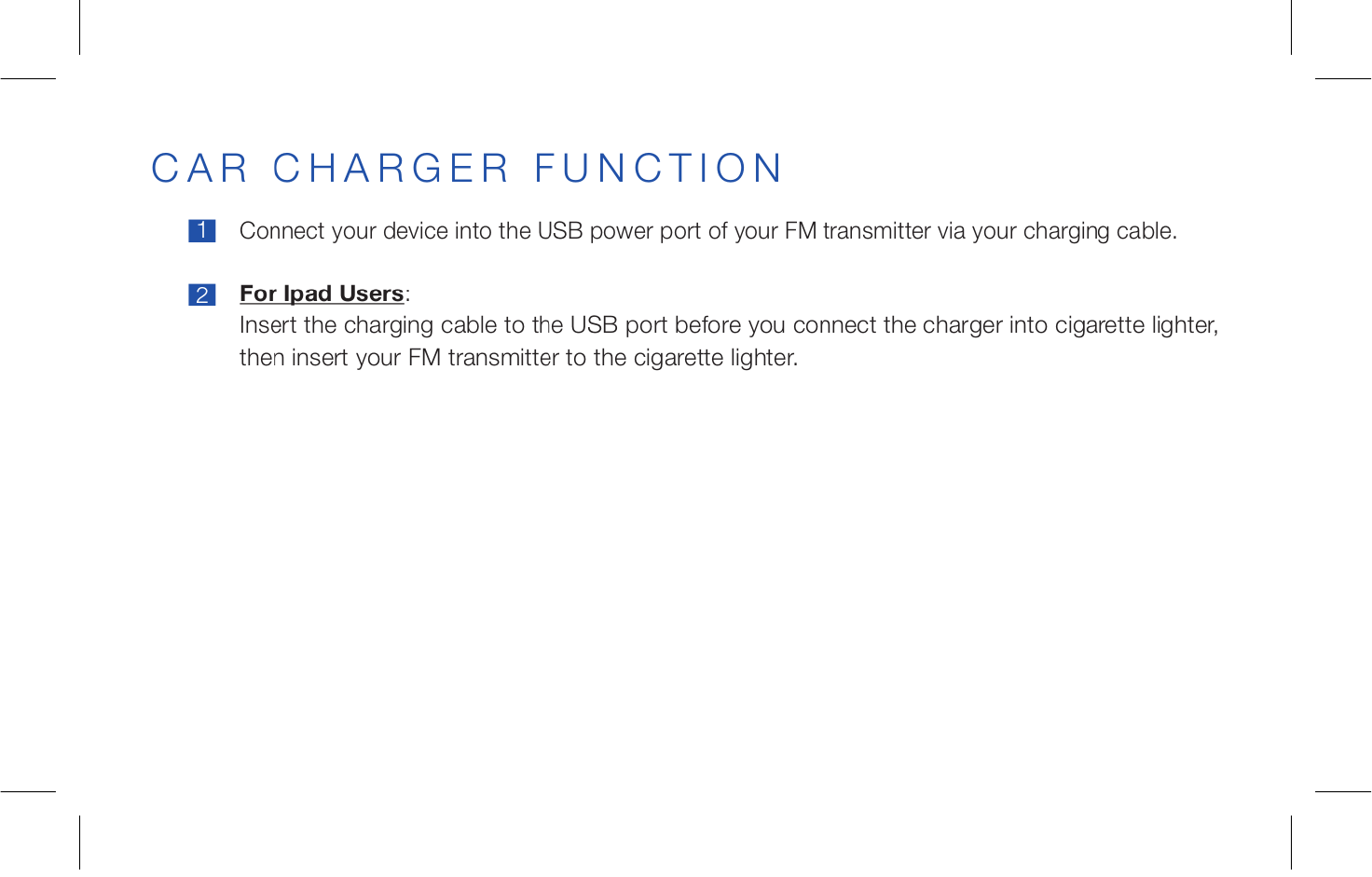 the “ ” button to increase frequency, or “ ” to decrease frequency. The FM transmitter will