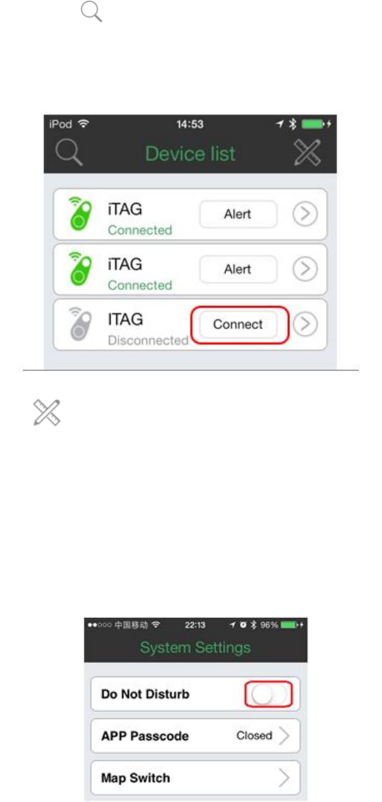 2. Click the button “ ” to find more connectable iTag devices, such