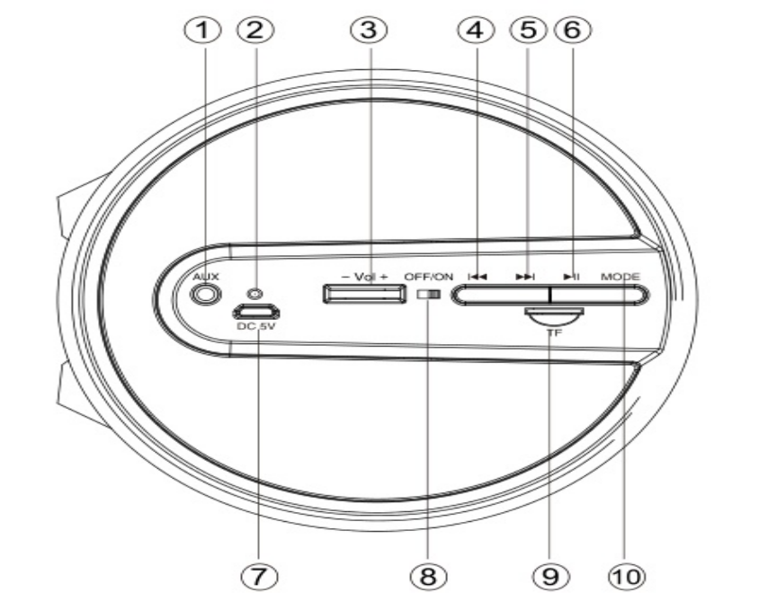of this devices. Then press the “MODE” button to switch to AUX-IN state.