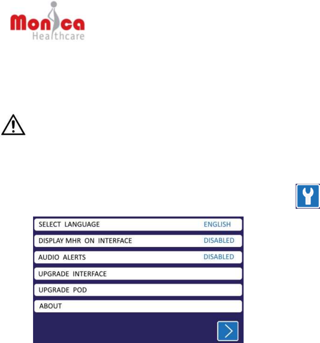 Servicing of the Novii Interface must be carried out by Monica Healthcare authorized personnel.