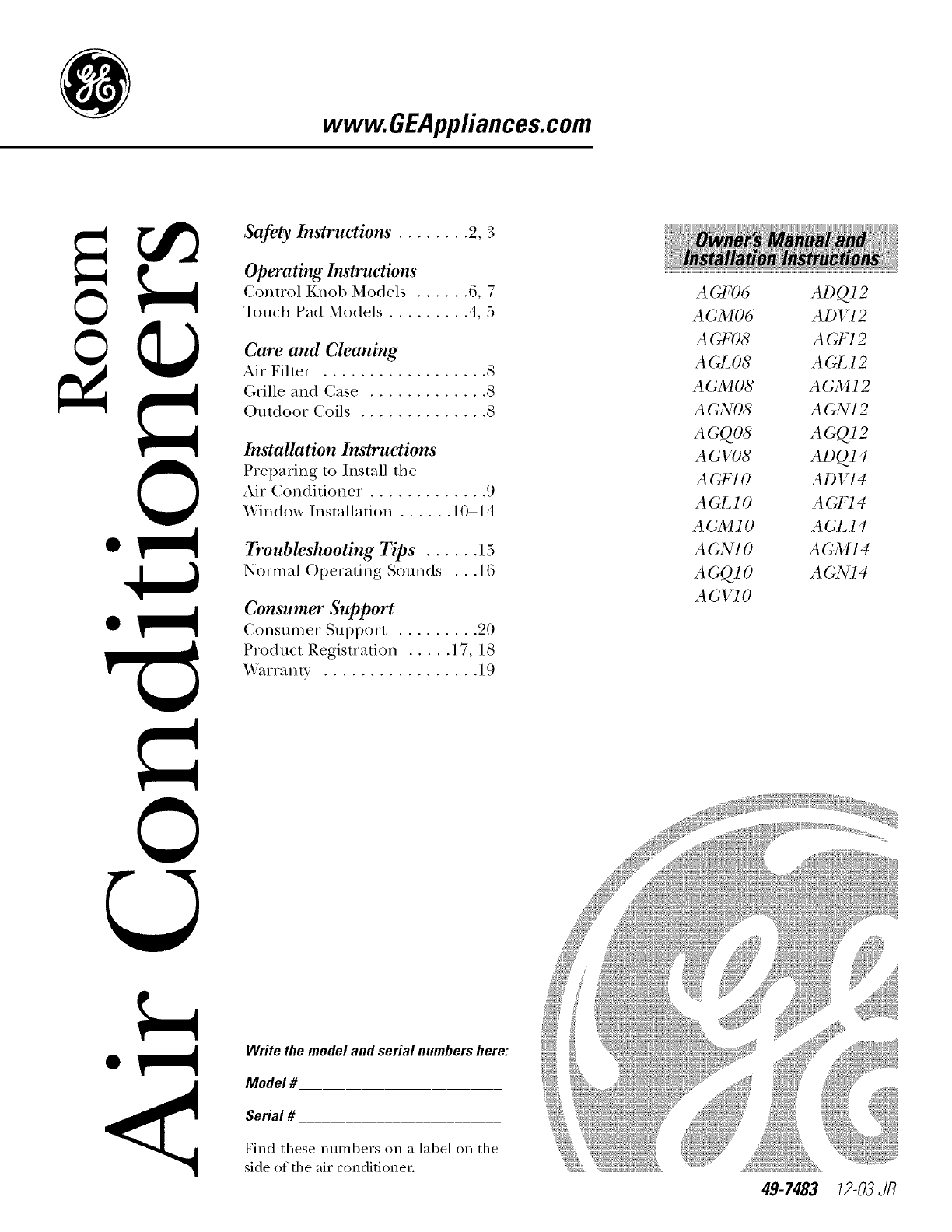 User Manual: GE ADV12AAG1 ADV12AAG1 GE ROOM A/C - Manuals and Guides View the owners manual for your GE ROOM A/C #ADV12AAG1. Home:Heating & Cooling Parts:GE Parts:GE ROOM A/C Manual