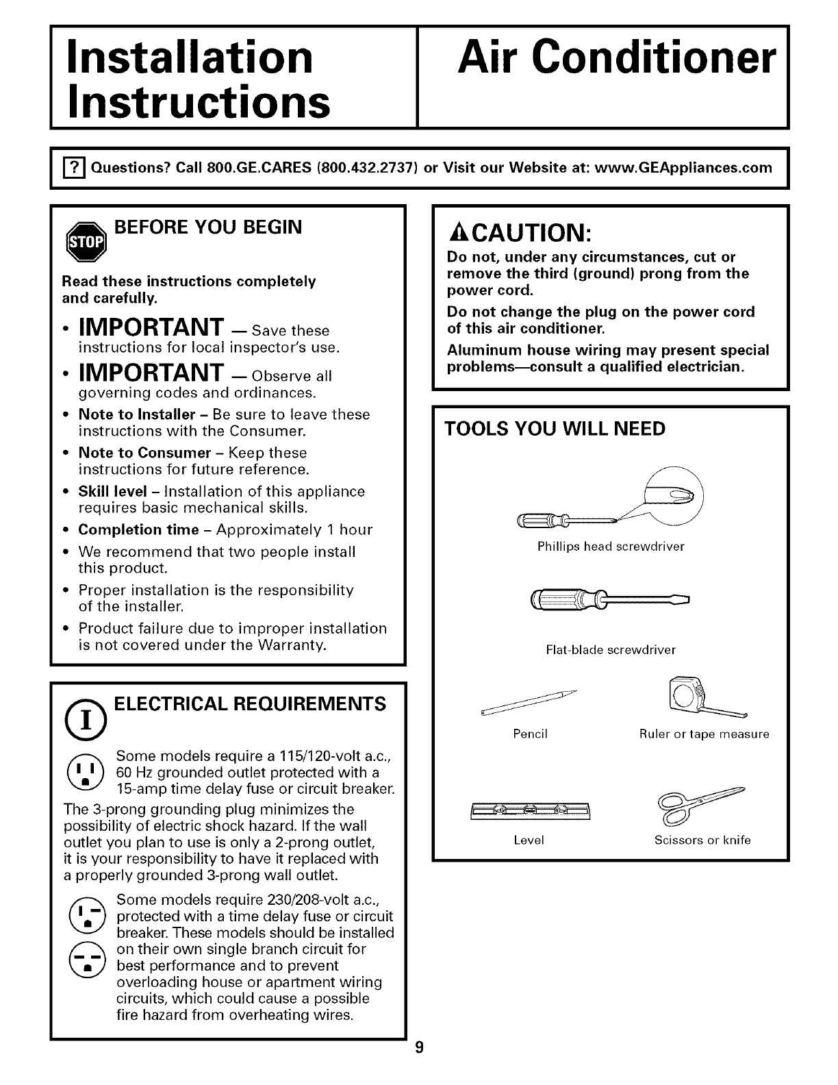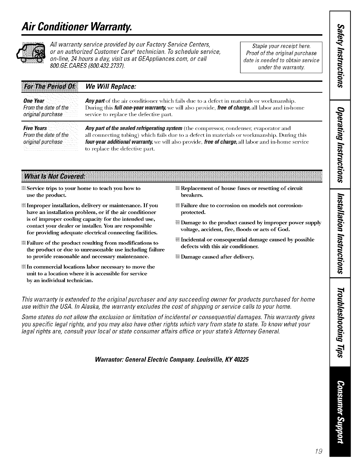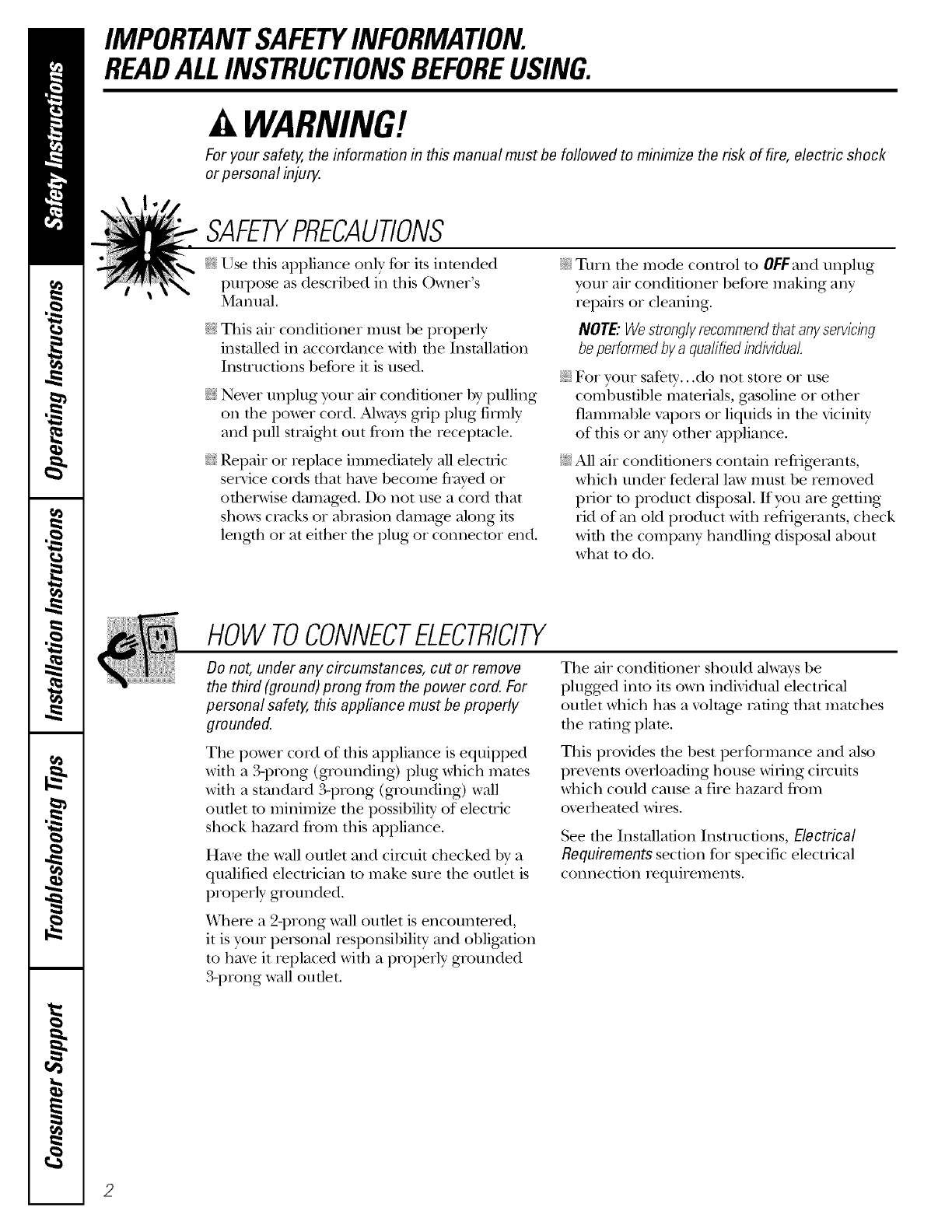 GE Air Conditioner Room (42) Manual L0709154 GE Air Conditioner Room (42) Owner's Manual, GE Air Conditioner Room (42) installation guides