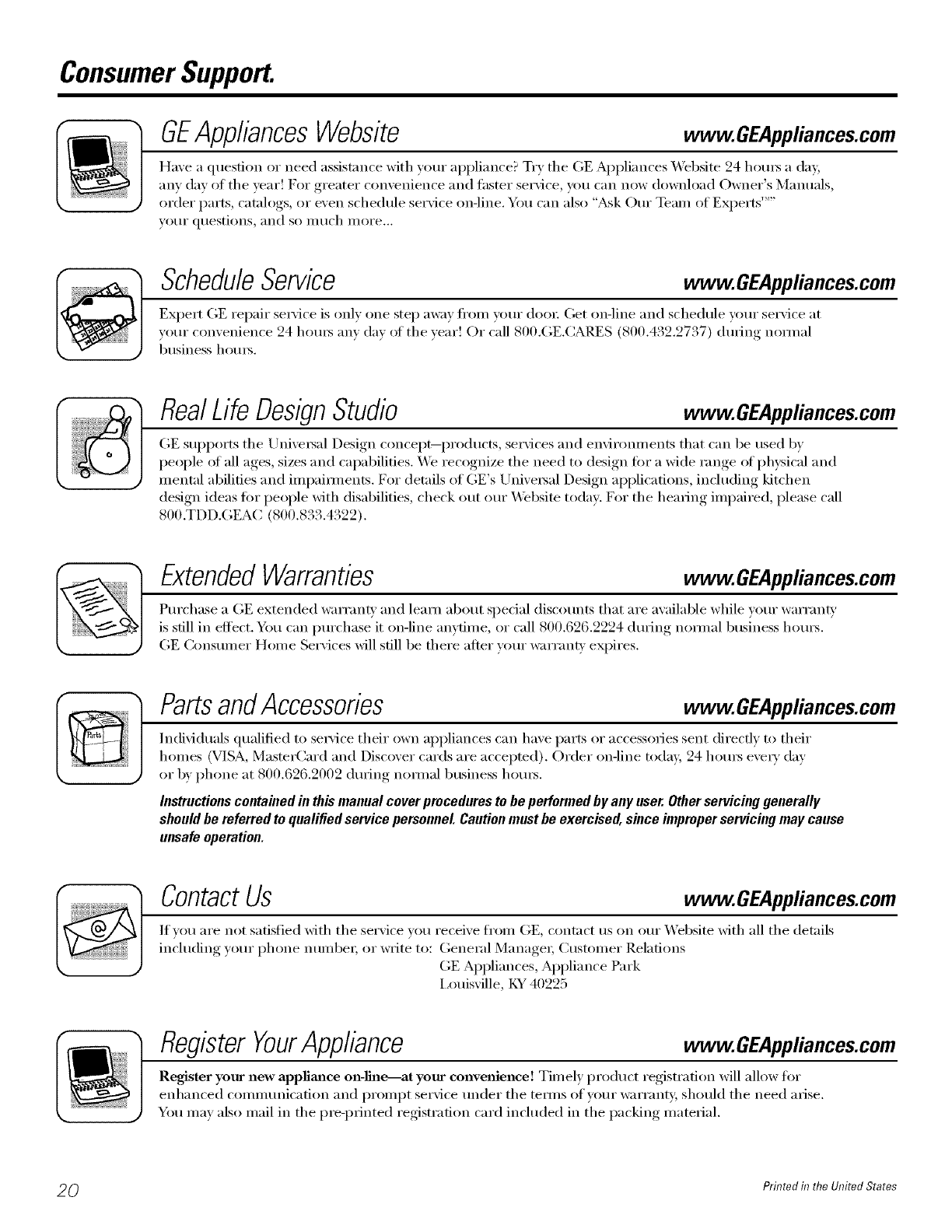 on-line, 24 hours a day, visit us at GEAppliances.com, or carl