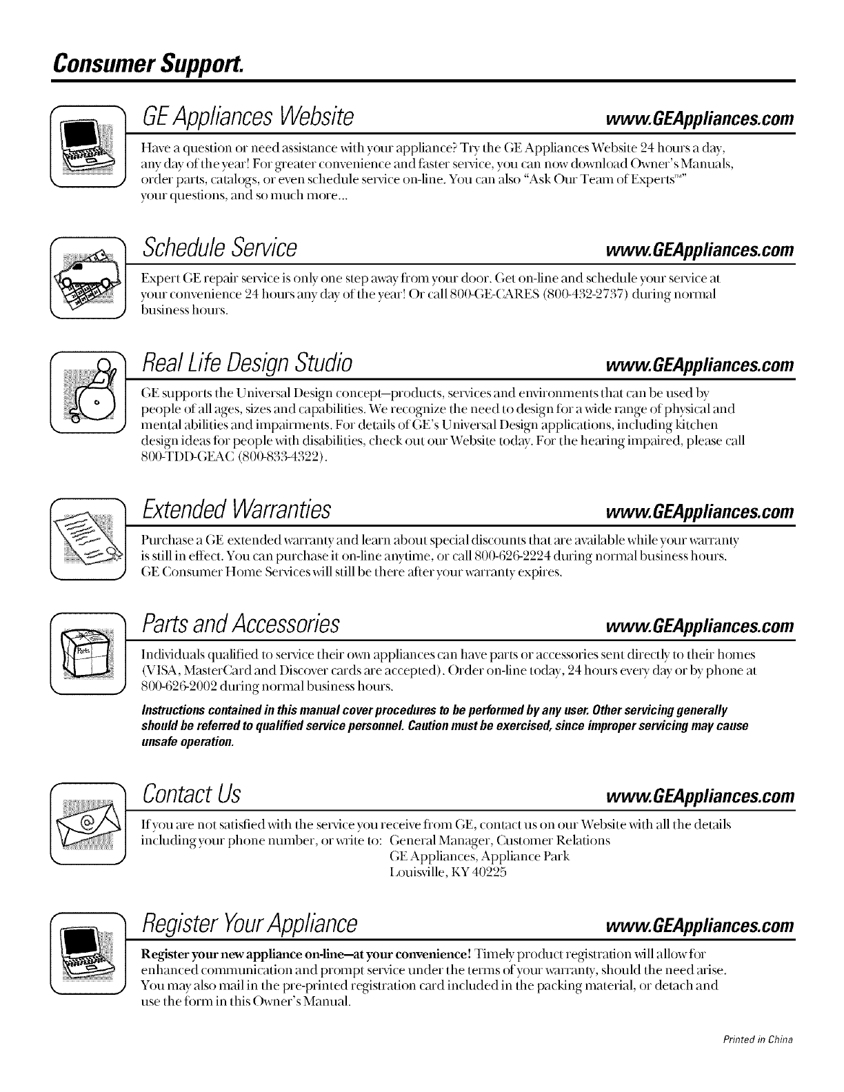 us at www. GEAppfiances.com, or call 800-GE-CARES.