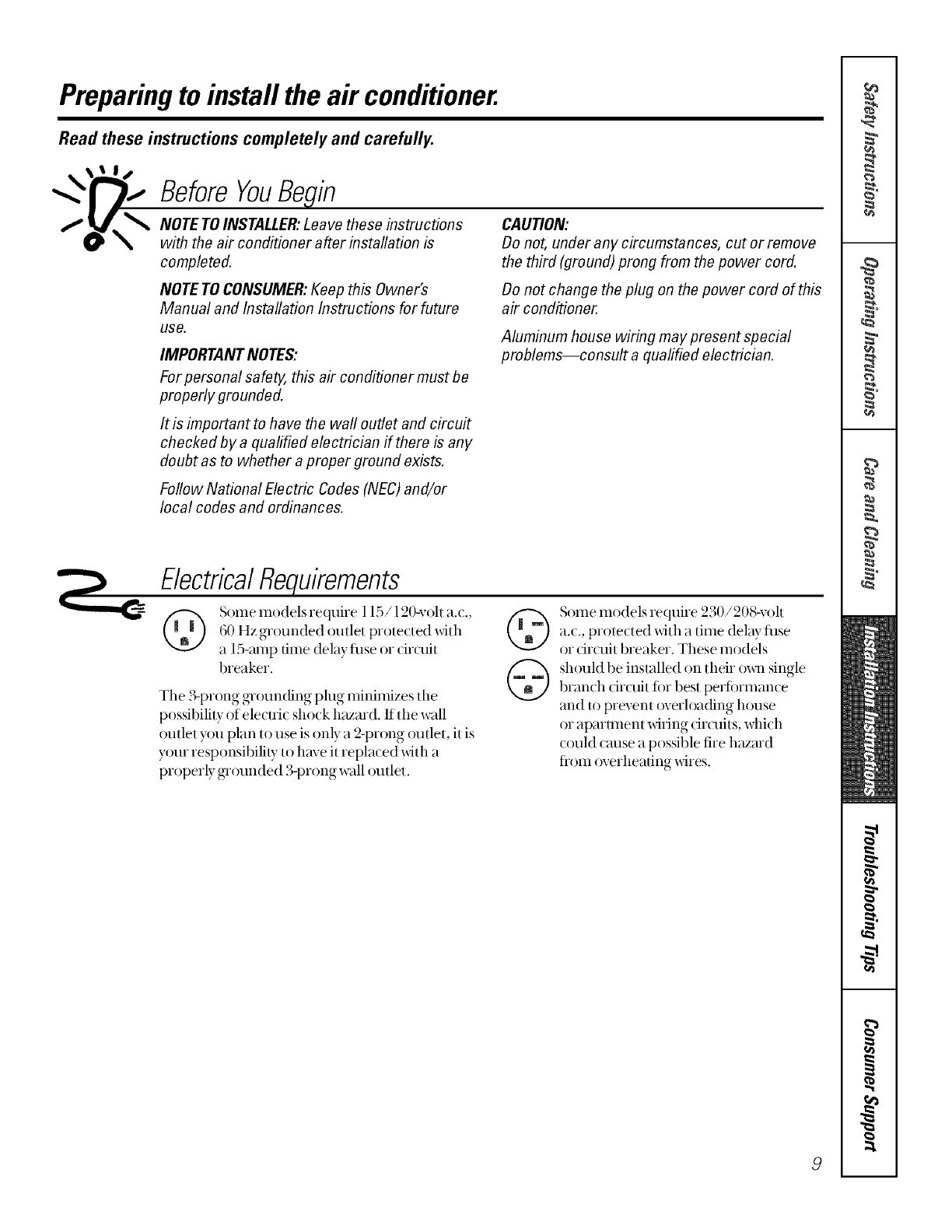 GE Air Conditioner Room (42) Manual L0521483 GE Air Conditioner Room (42) Owner's Manual, GE Air Conditioner Room (42) installation guides
