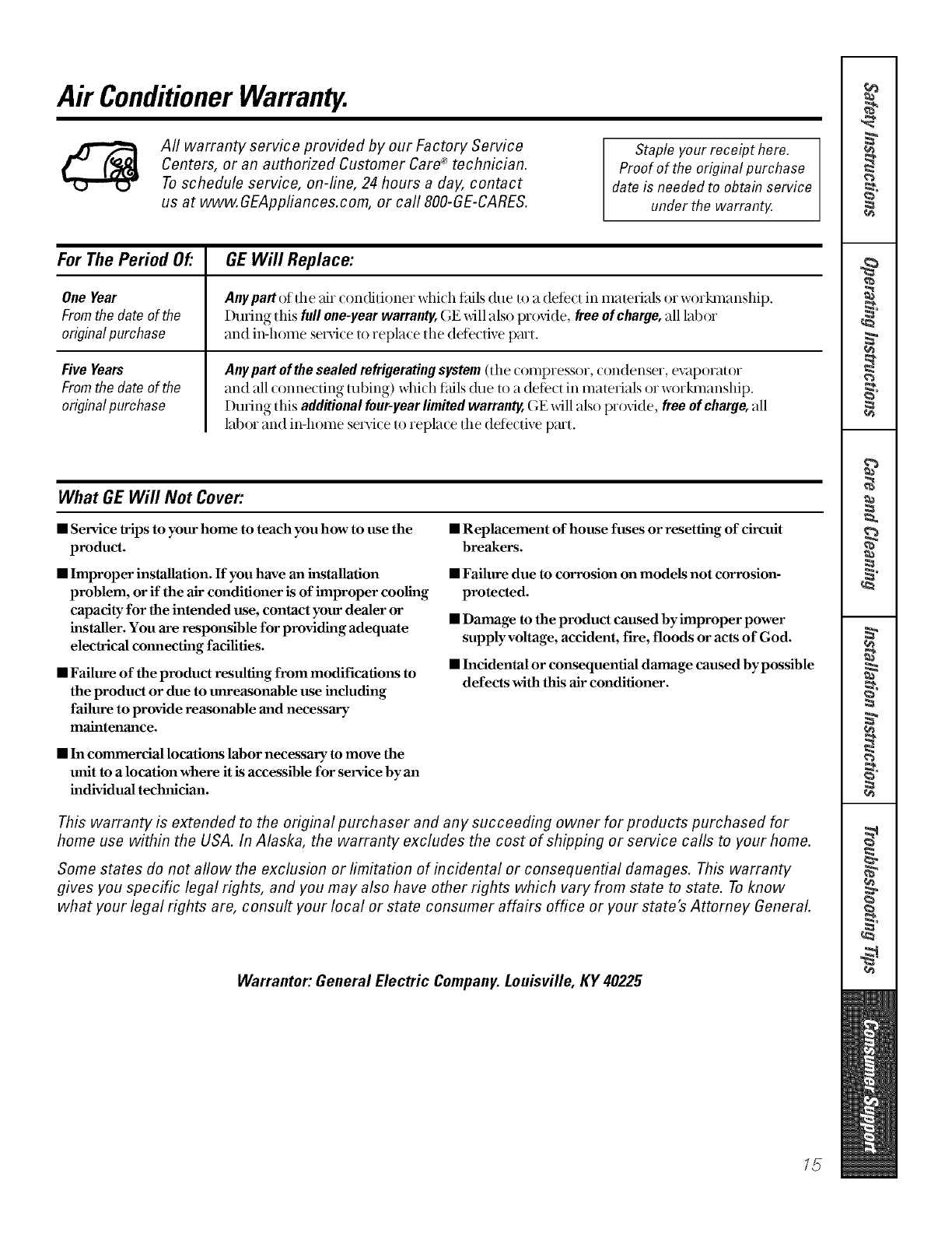 Warranter: General Electric Company. Louisville, KY 40225