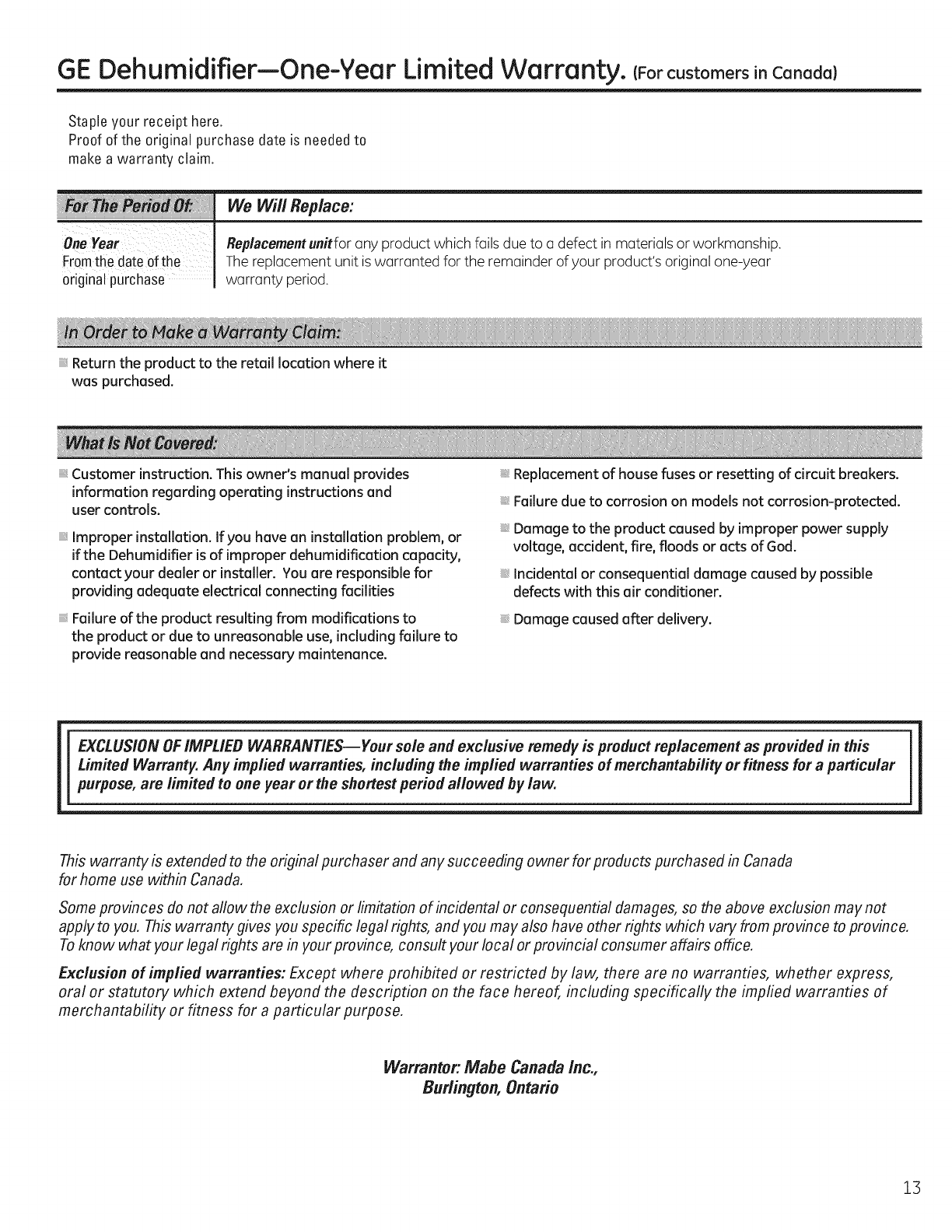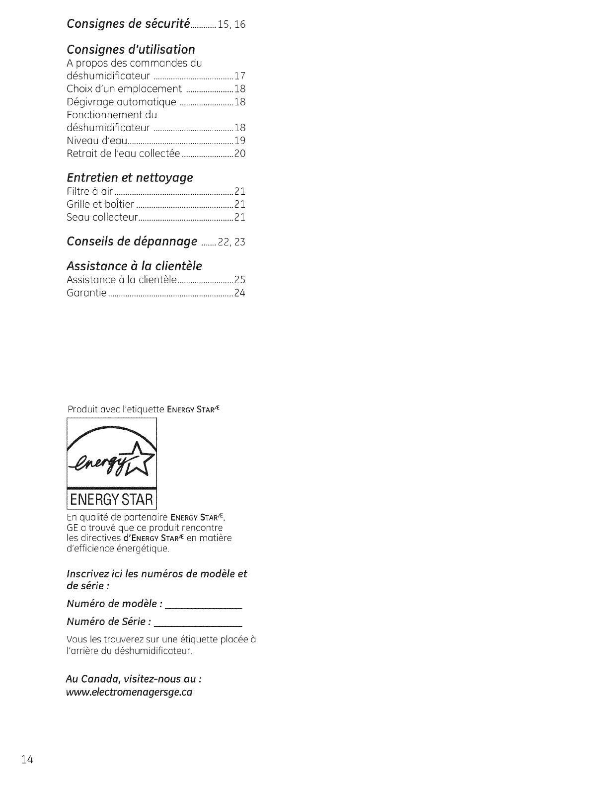 GE APEL70LTL1 1507096L User Manual DEHUMIDIFIER Manuals And Guides