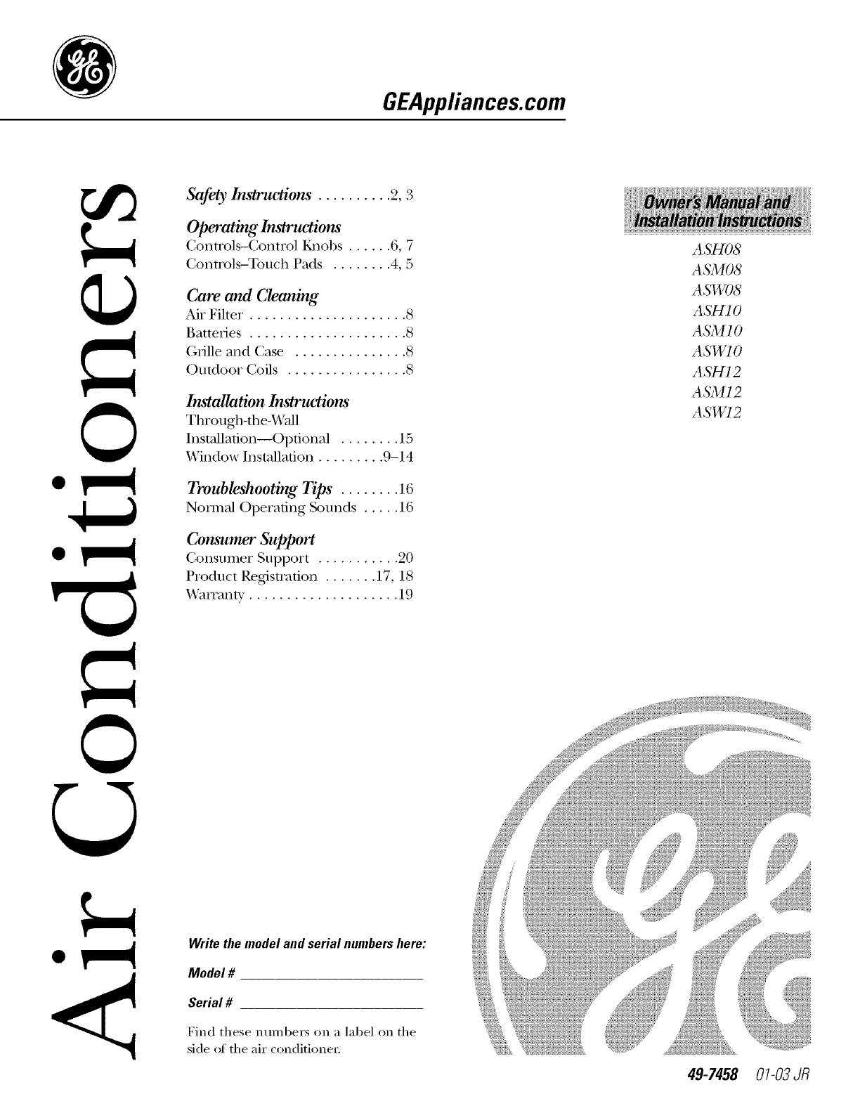 GE ASM10AKS1 User Manual ROOM AIR CONDITIONER Manuals And Guides L0702129