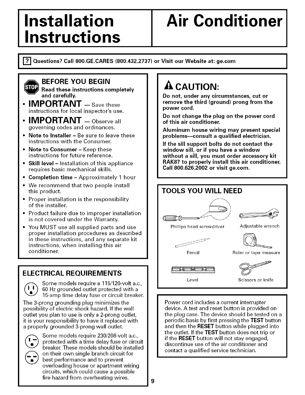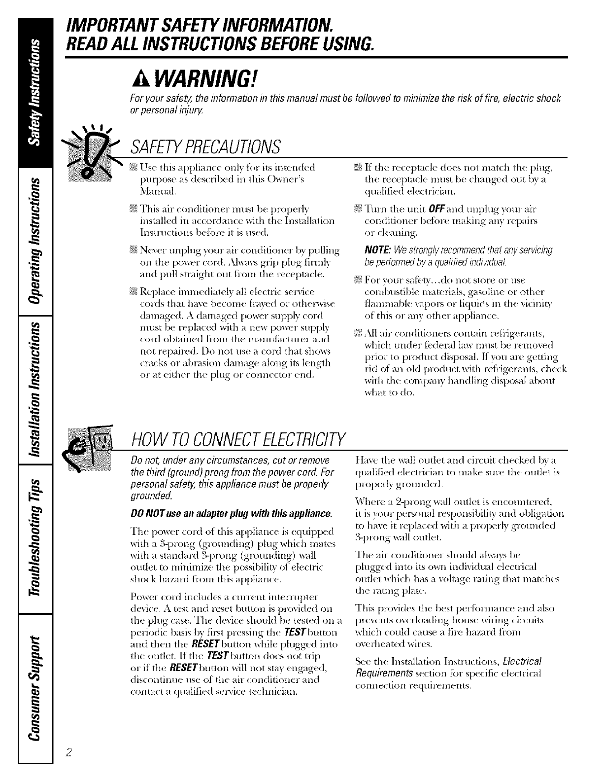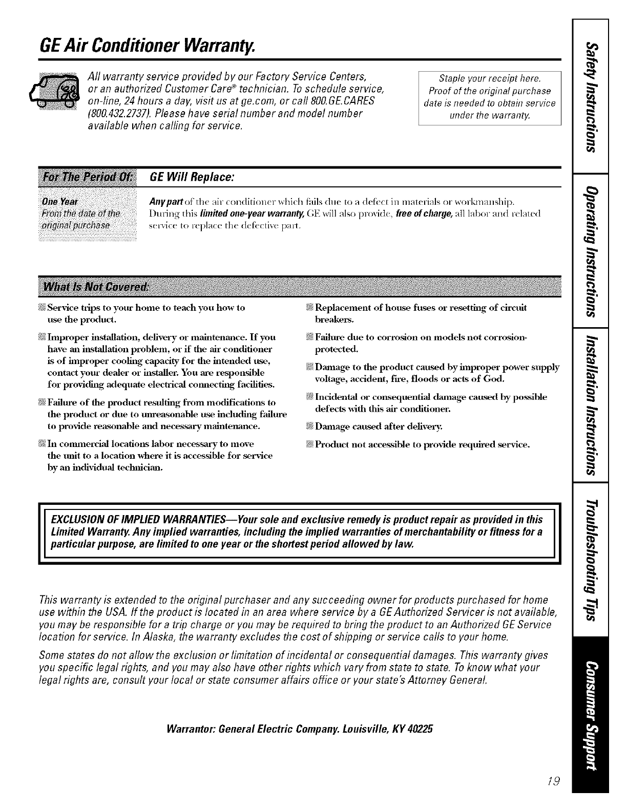 GE Air Conditioner Room (42) Manual L08A6048 GE Air Conditioner Room (42) Owner's Manual, GE Air Conditioner Room (42) installation guides