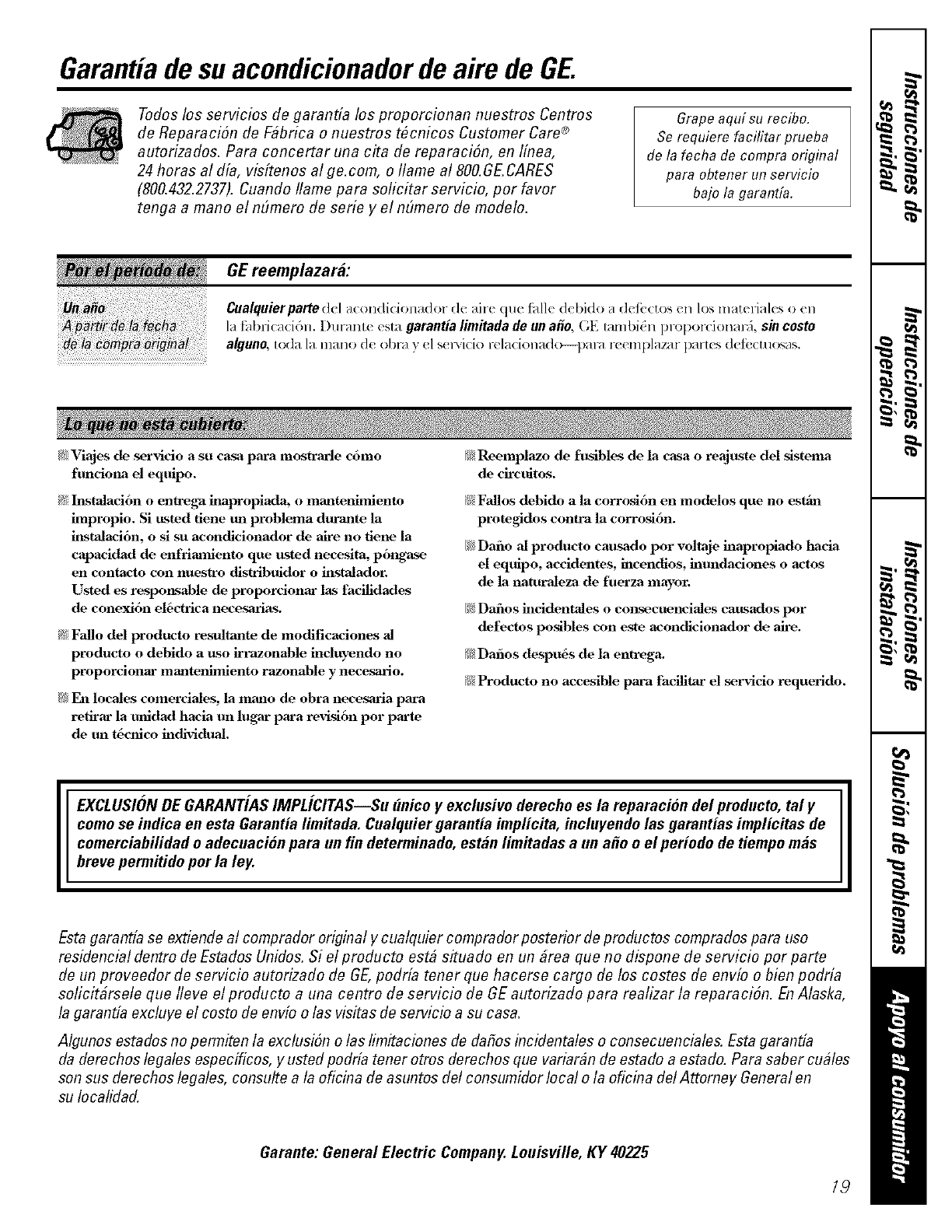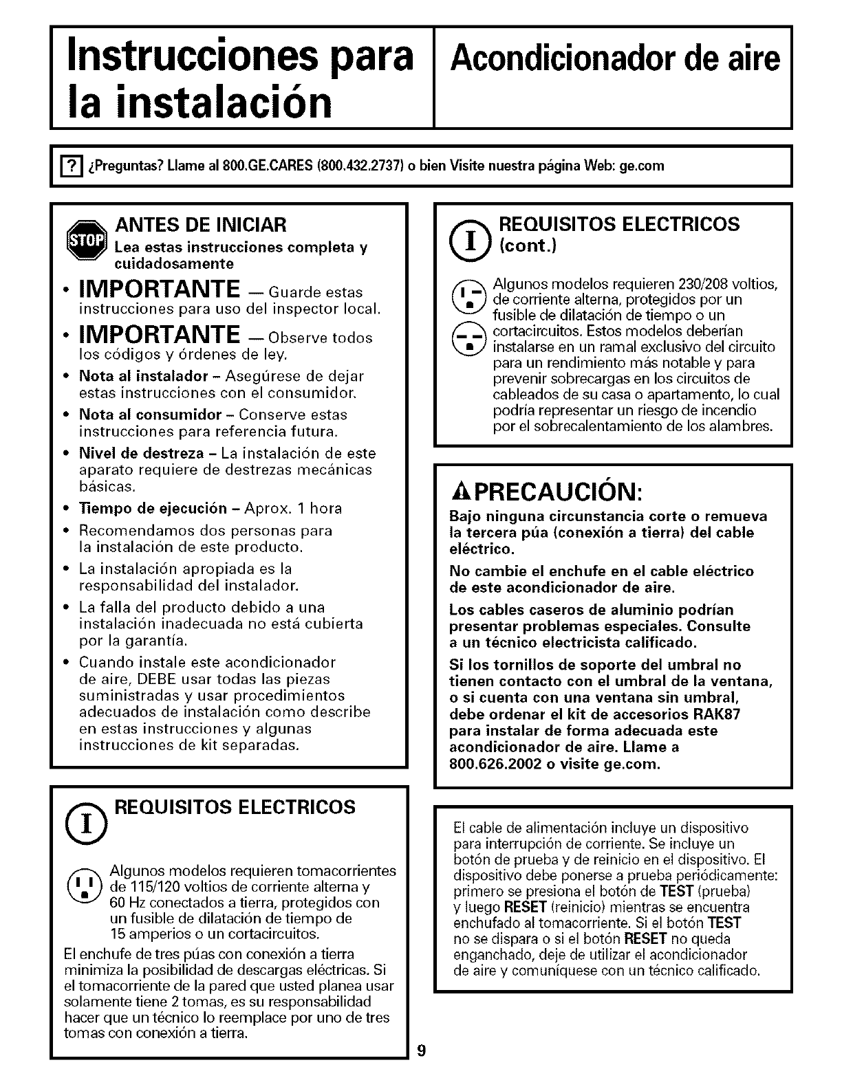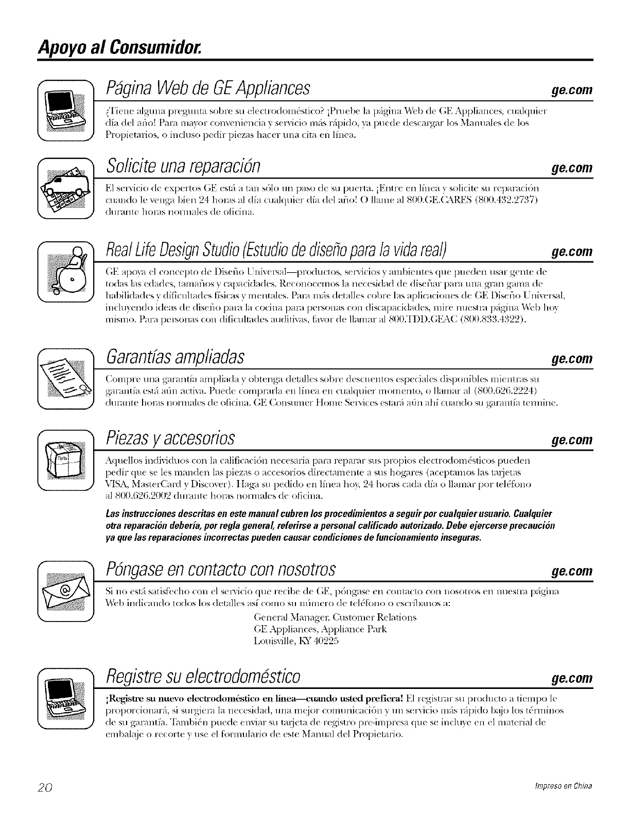 24 horas al dfa, visftenos al ge.com, o flame a1800.GE.CARES