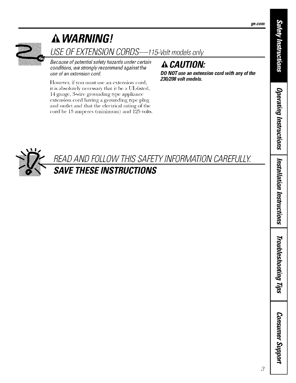 For your safeW, the information in this manual must be followed to minimize the risk of fire, electric shock