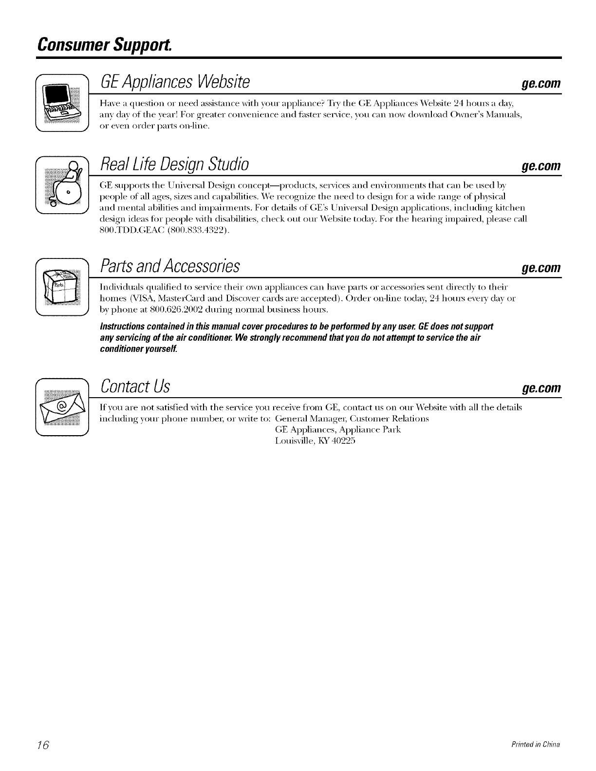 GEAir ConditionerWarranty--One YearLimited Warranty.