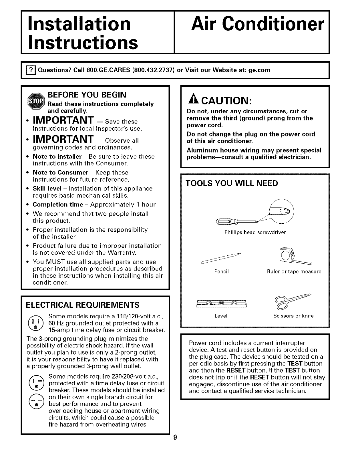 GE Air Conditioner Room (42) Manual L0701193 GE Air Conditioner Room (42) Owner's Manual, GE Air Conditioner Room (42) installation guides