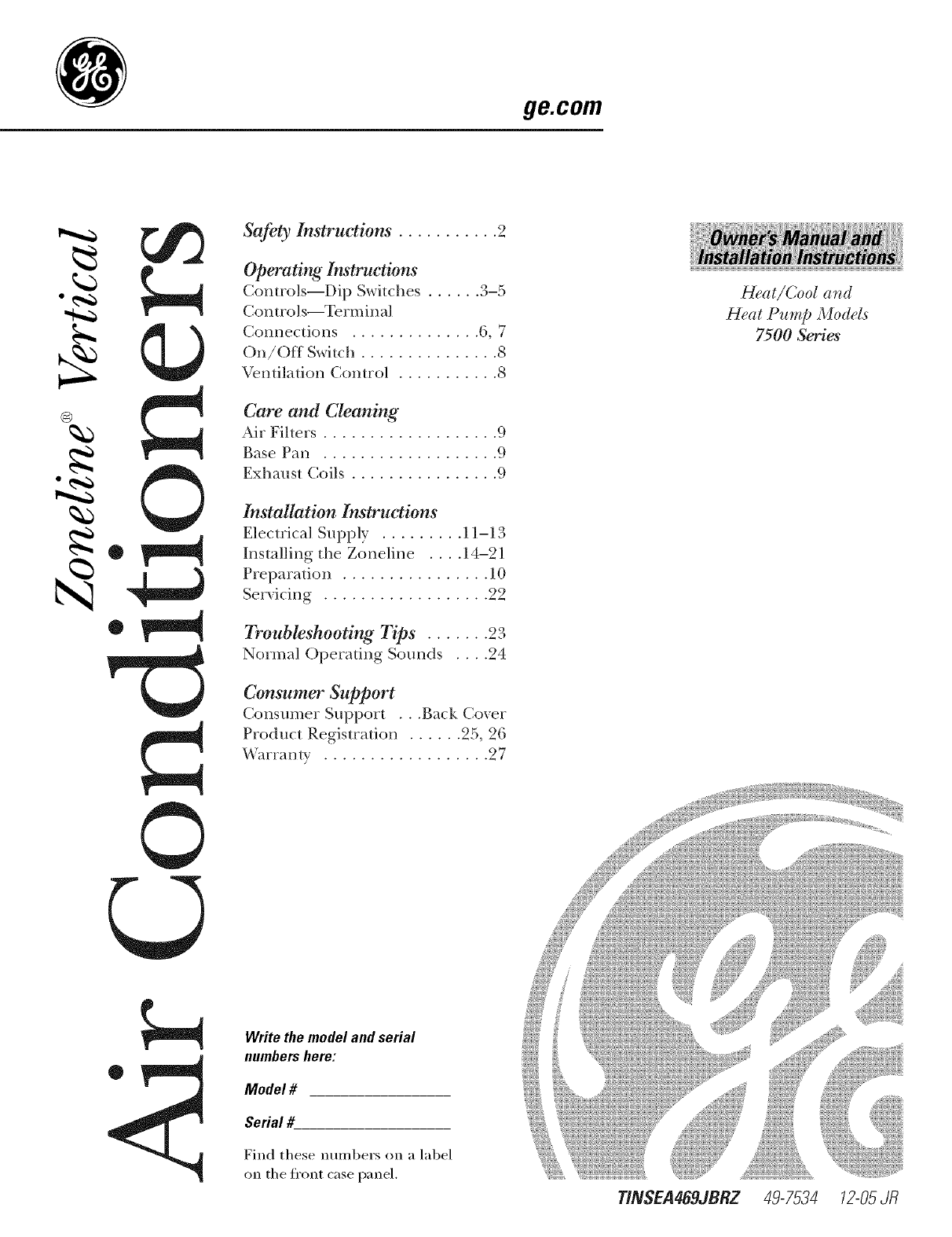 User Manual: GE AZ75E09DACM1 AZ75E09DACM1 GE ZONELINE - Manuals and Guides View the owners manual for your GE ZONELINE #AZ75E09DACM1. Home:Heating & Cooling Parts:GE Parts:GE ZONELINE Manual
