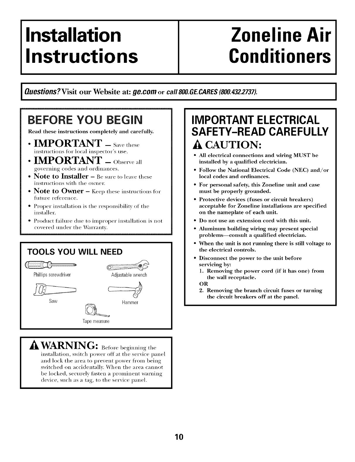 GE Package Units(both units combined) Manual L0604543 GE Package Units(both units combined) Owner's Manual, GE Package Units(both units combined) installation guides