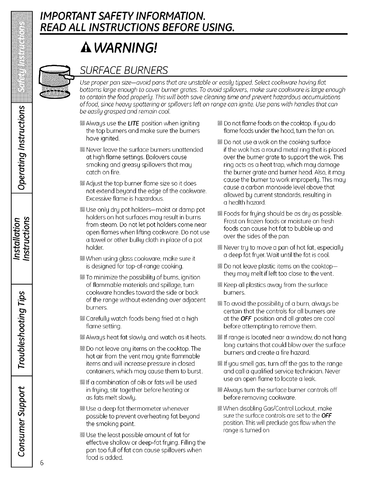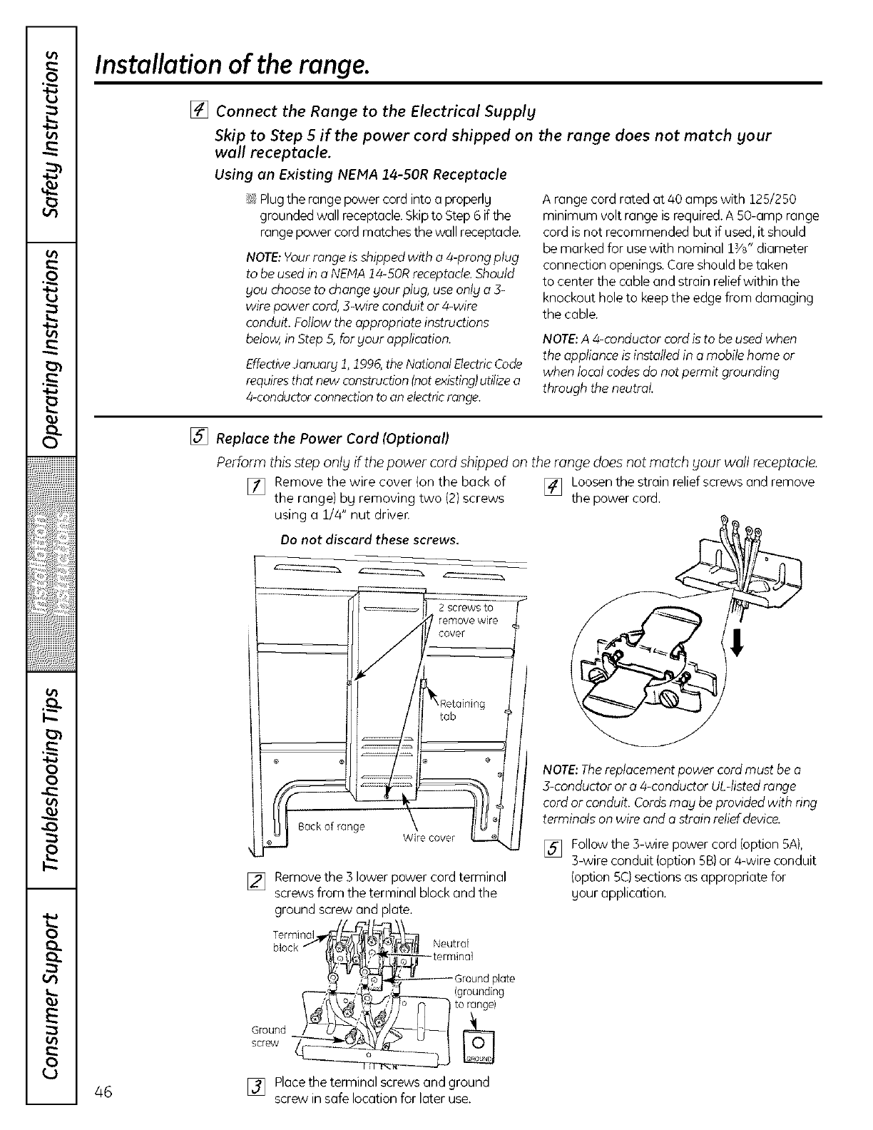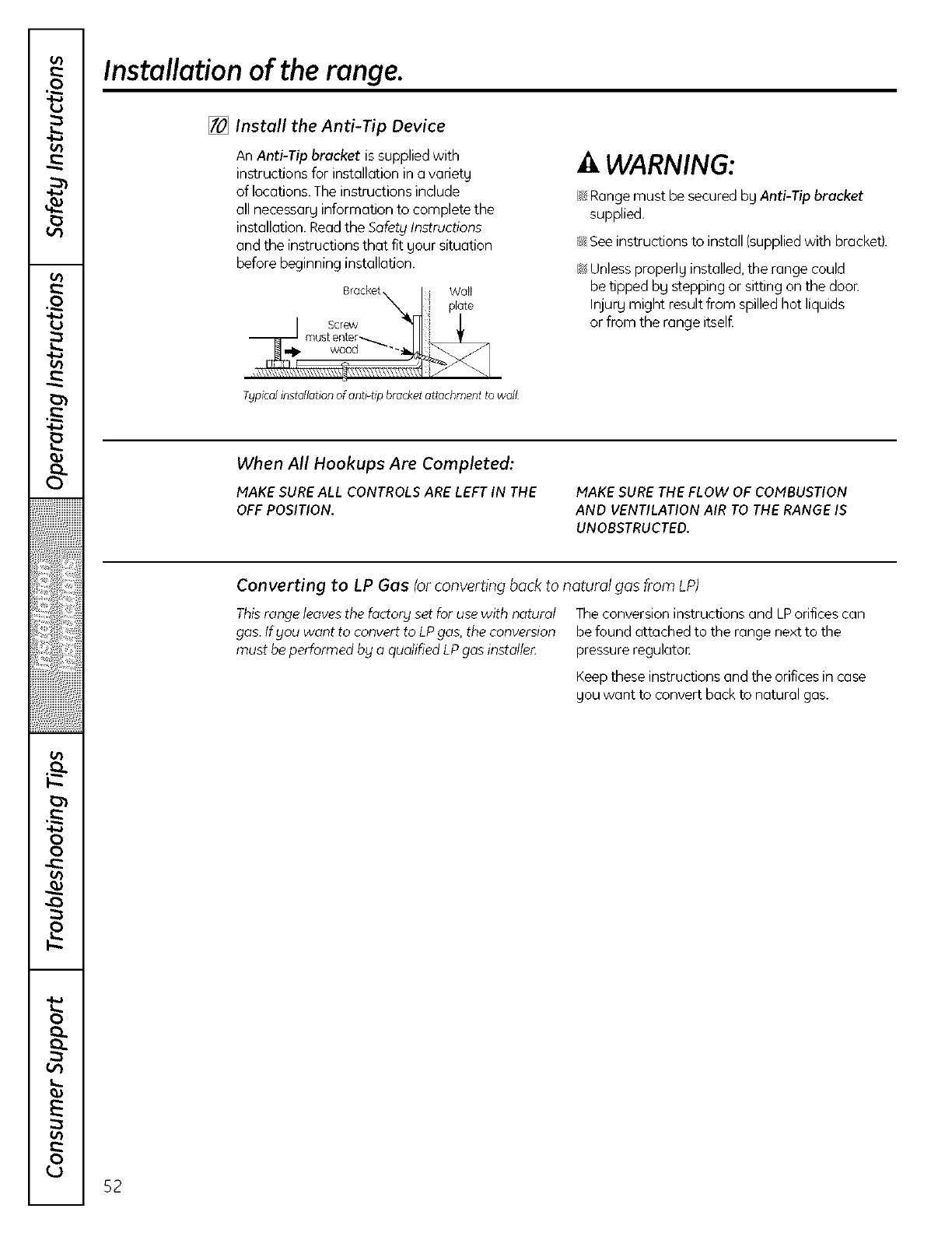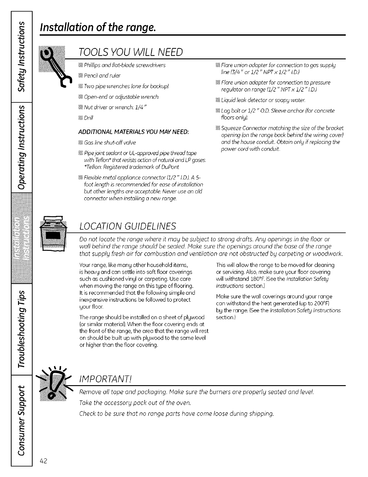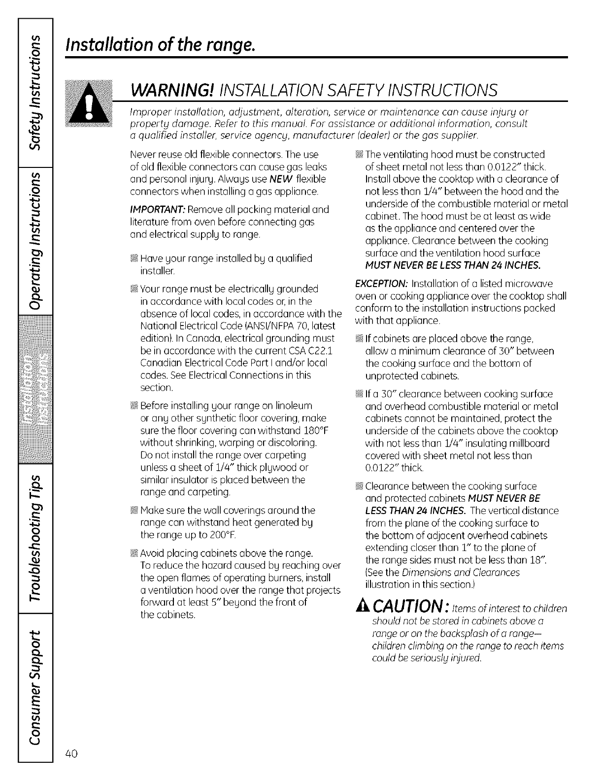 GE Range, Electric/Gas Manual L08A6016 GE Range, Electric/Gas Owner's Manual, GE Range, Electric/Gas installation guides