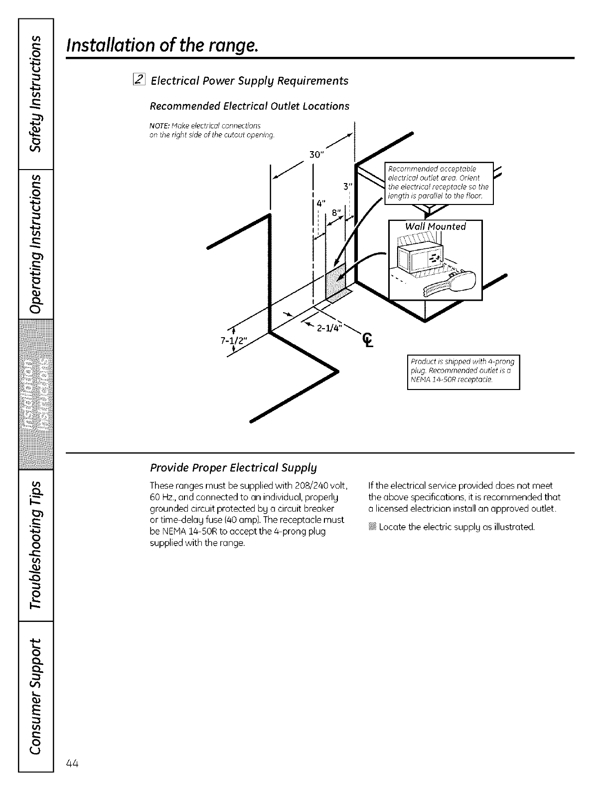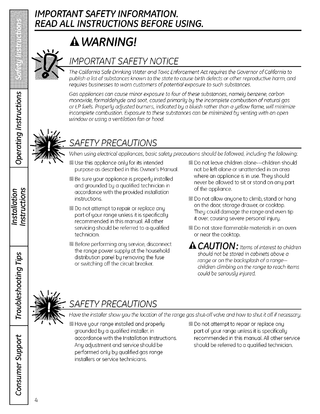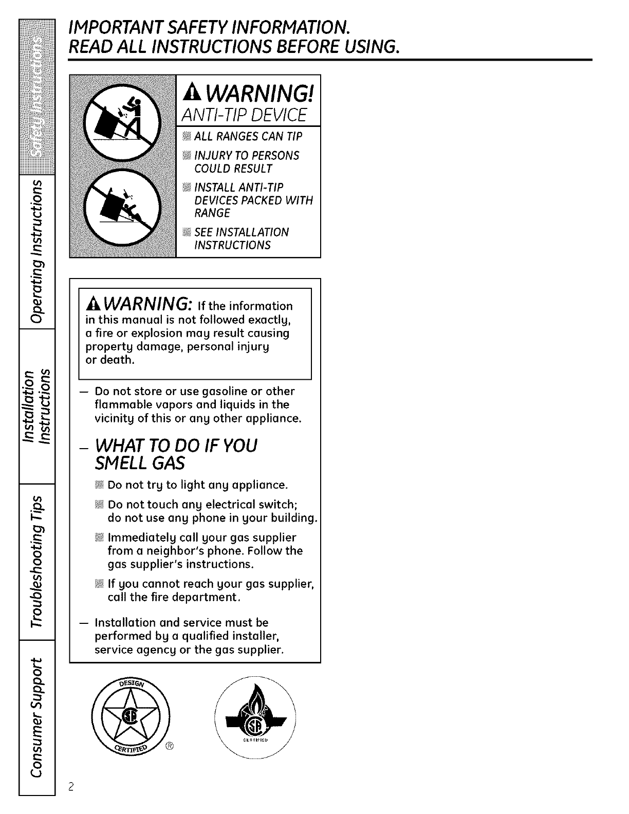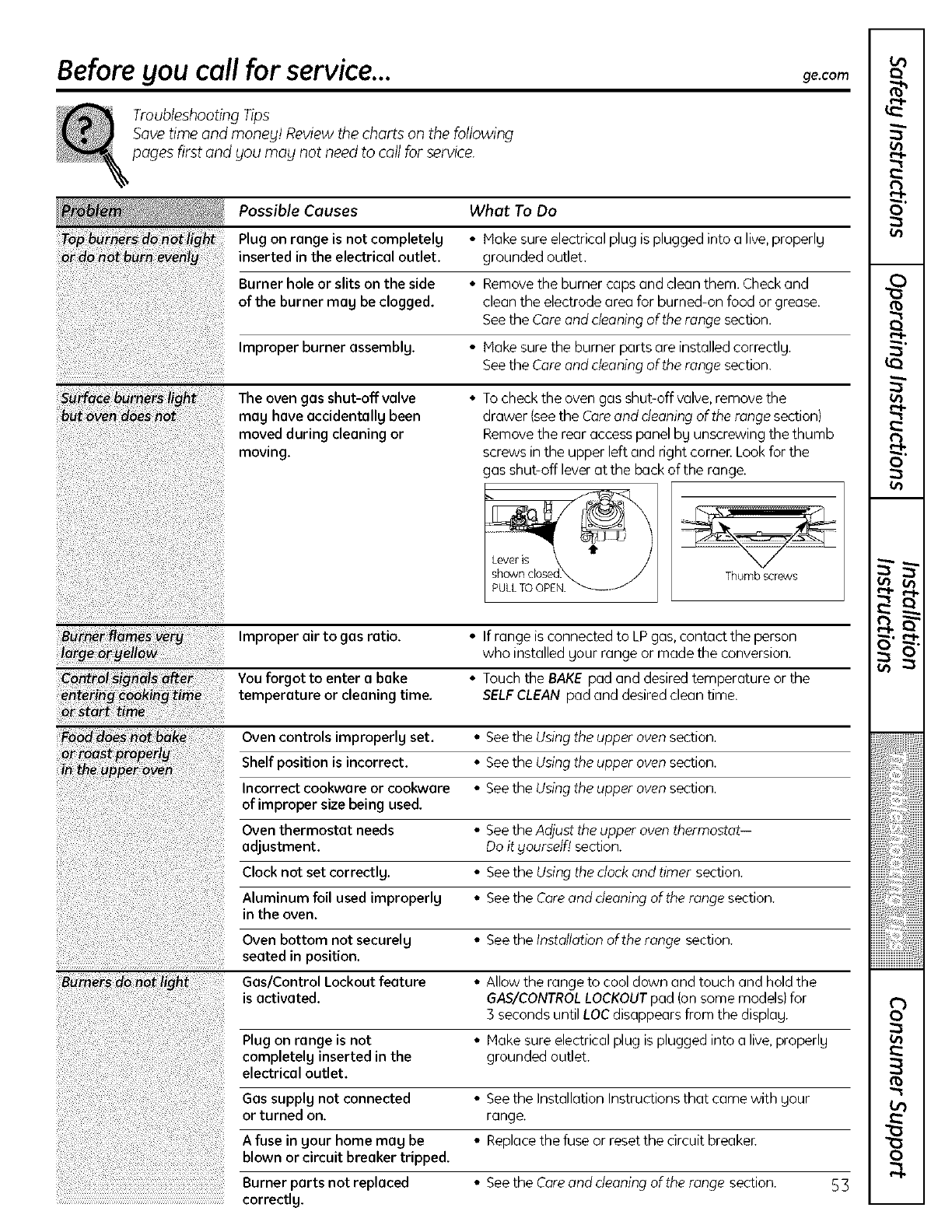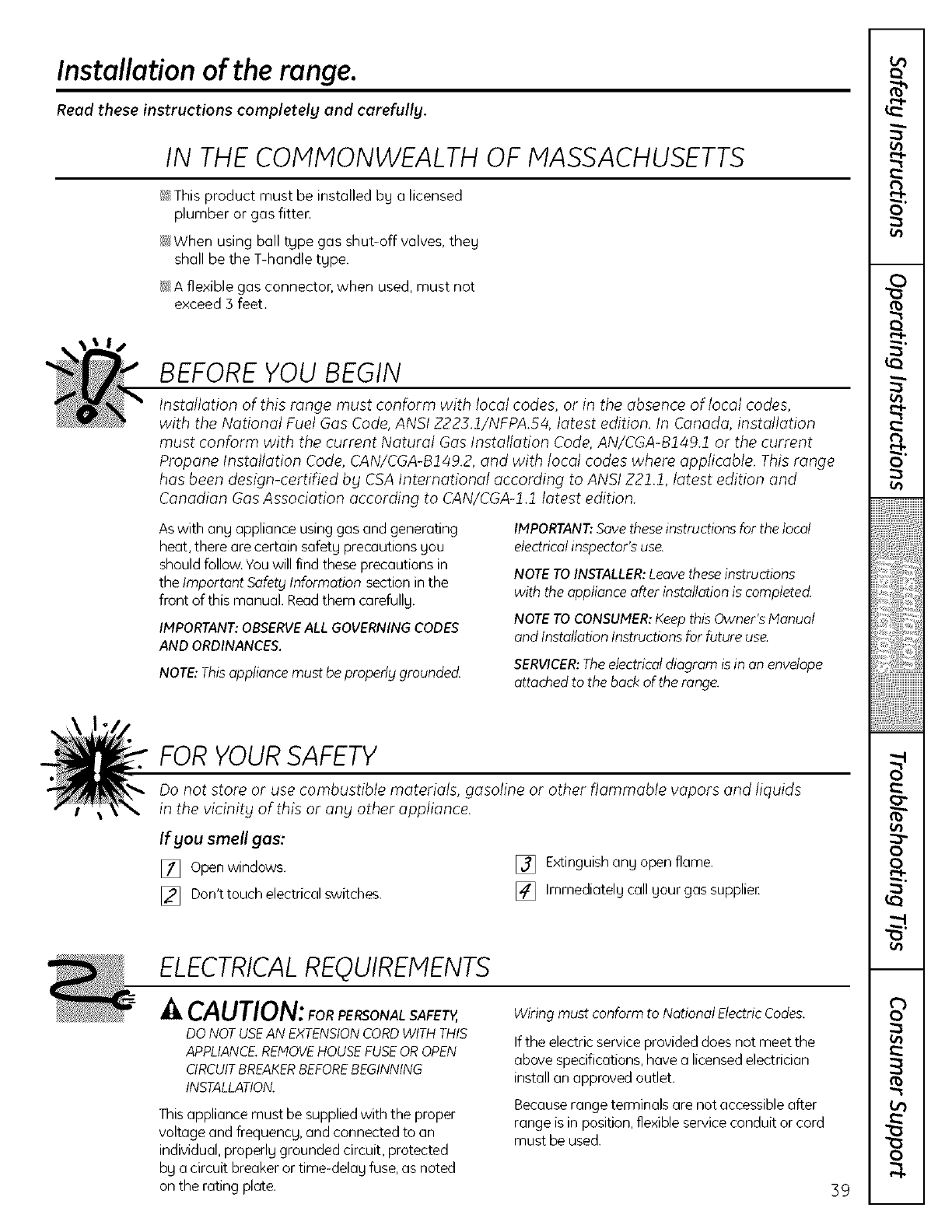 GE Range, Electric/Gas Manual L08A6016 GE Range, Electric/Gas Owner's Manual, GE Range, Electric/Gas installation guides