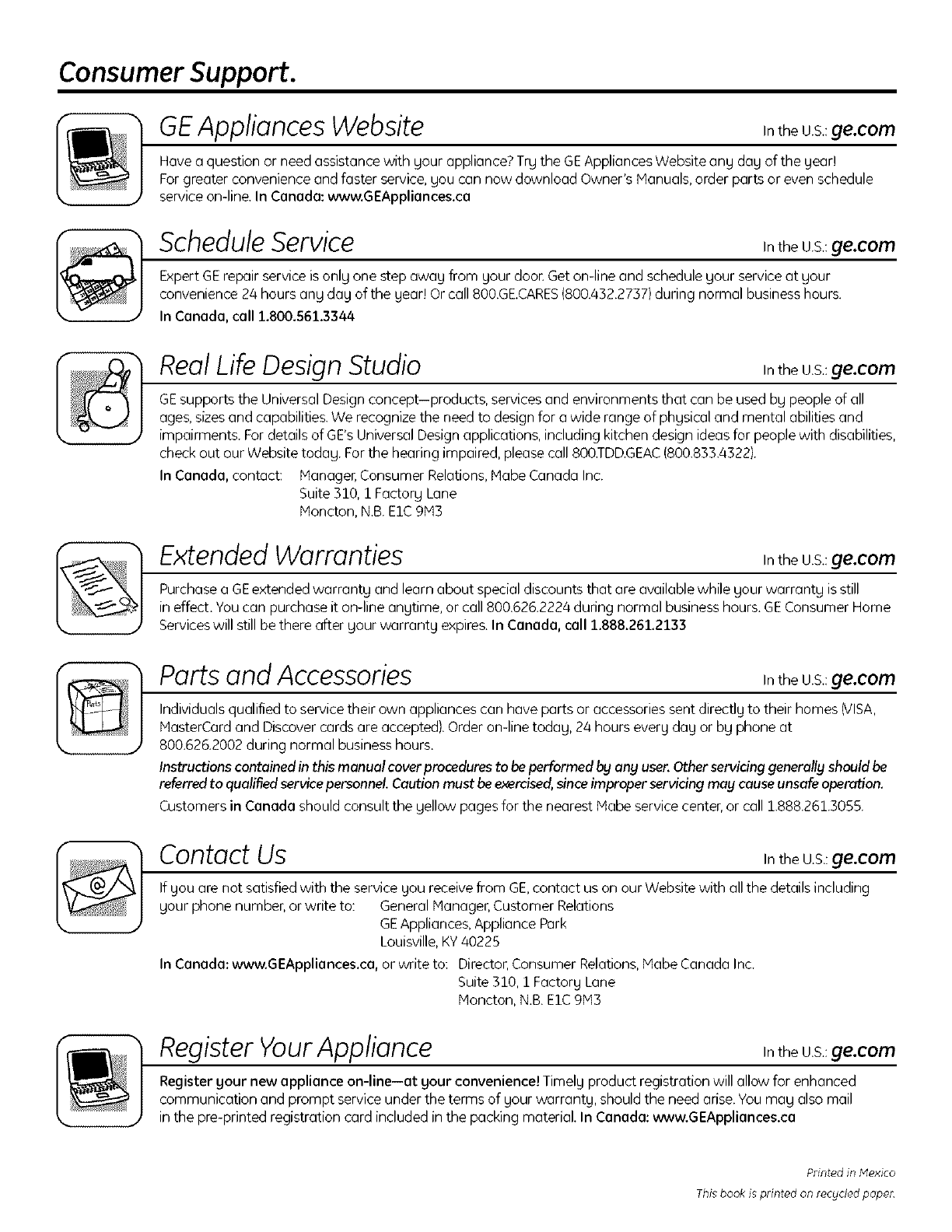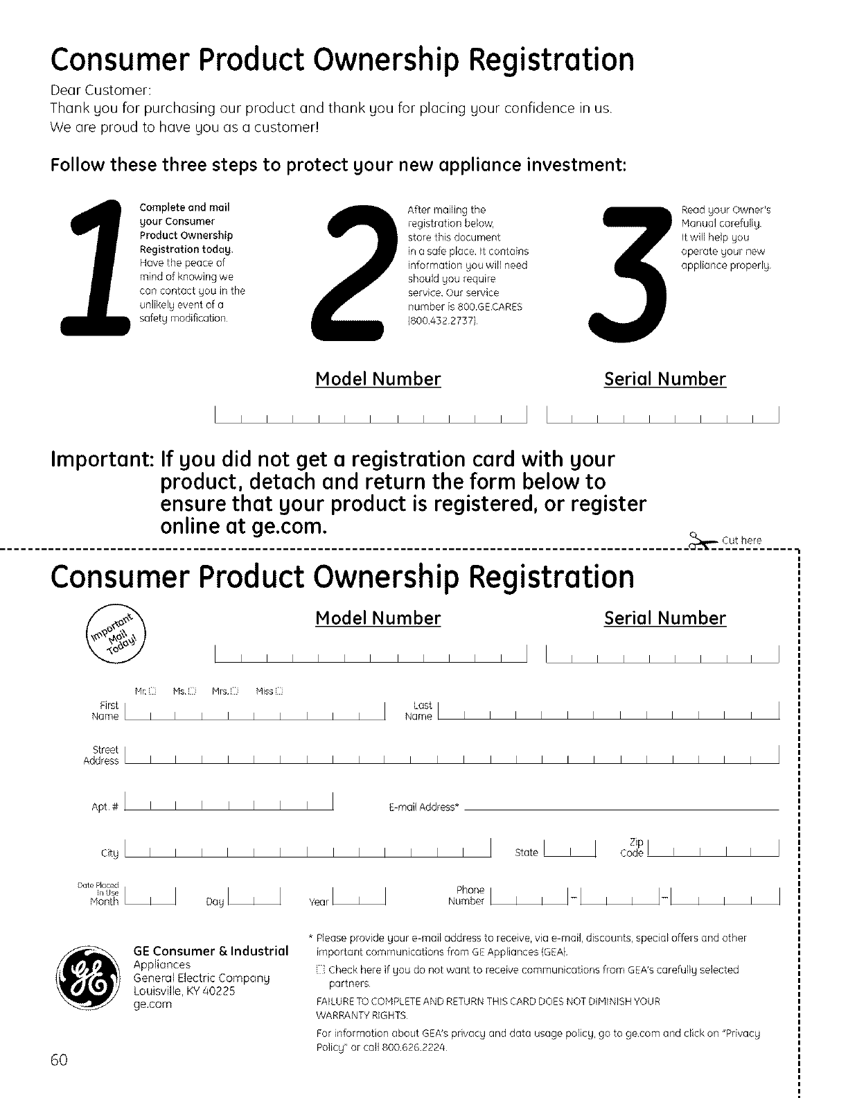 in the pre-printed registration card included in the packing material. In Canada: www.GEAppliances.ca