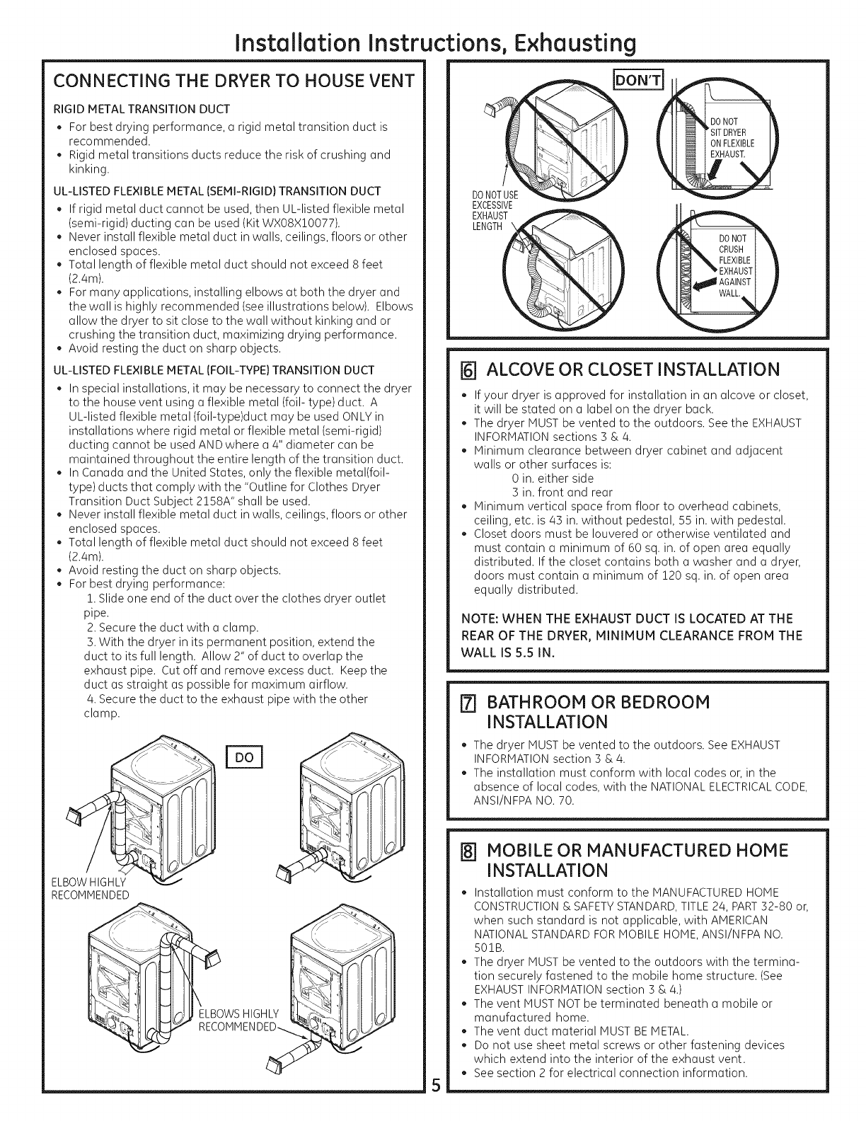 Dryer To House Vent" on page S of this manual. Flexible venting materials