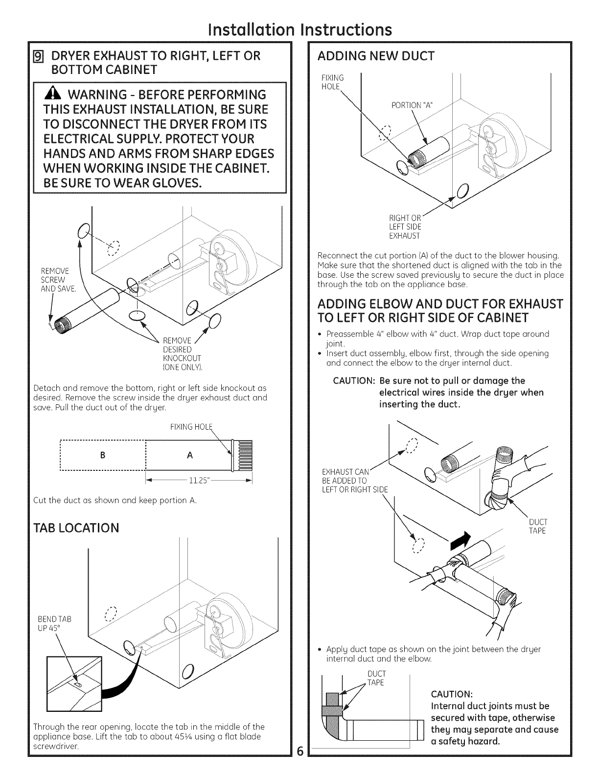 Use only 4" rigid metal ducting for exhausting the clothes dryer to the