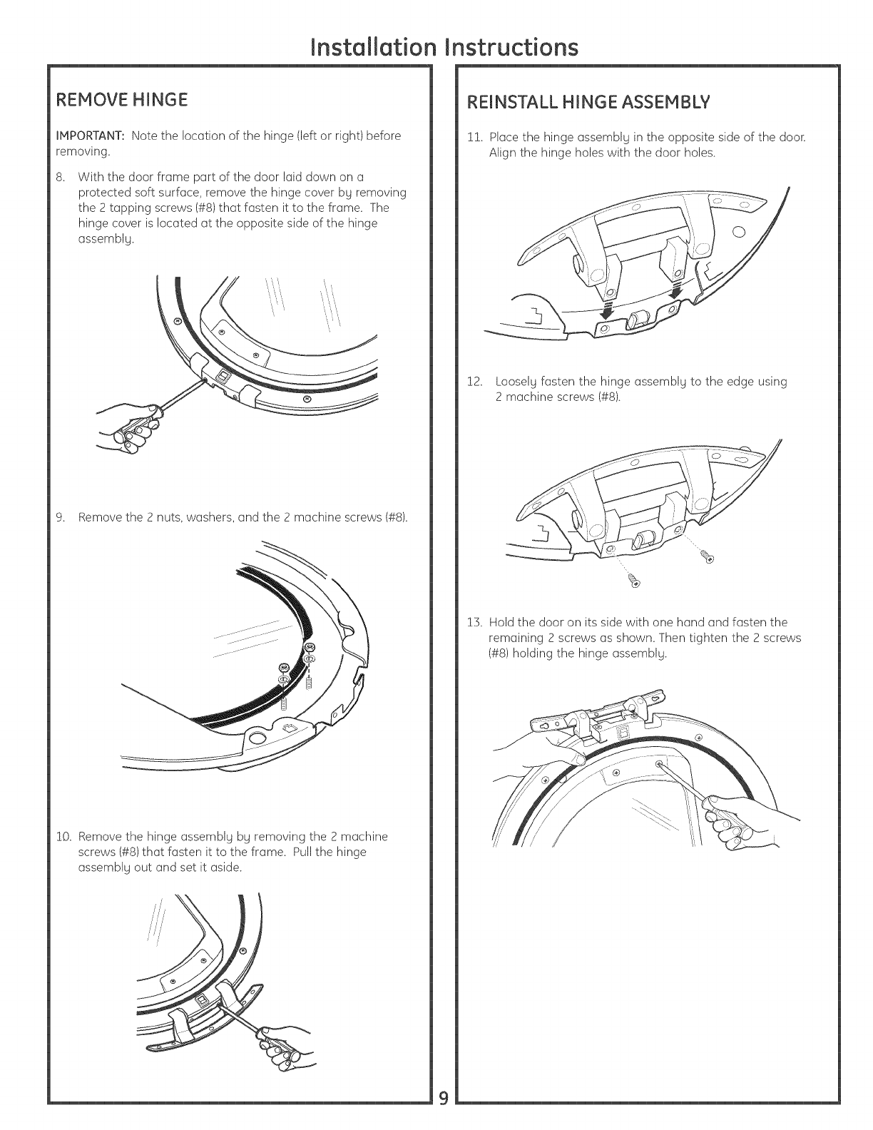 11. Place the hinge assemblg in the opposite side of the door.