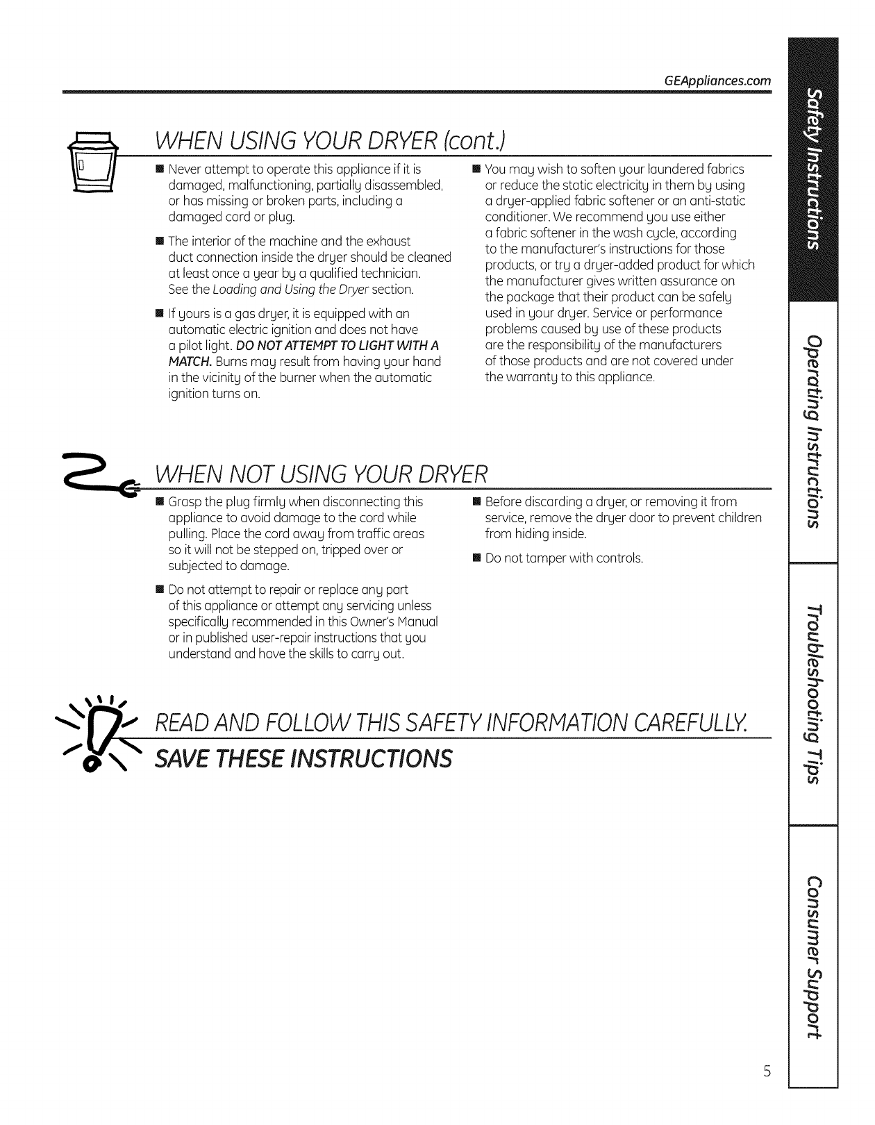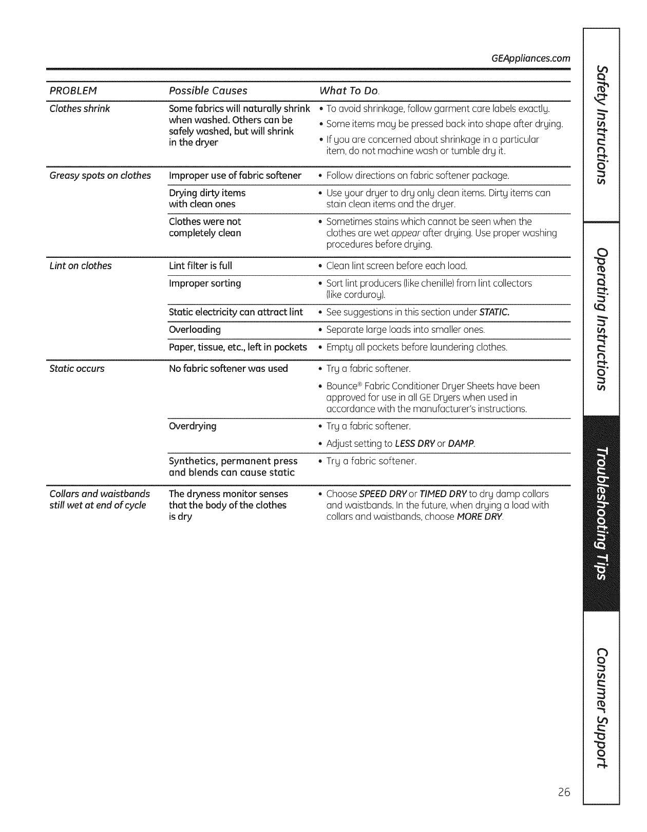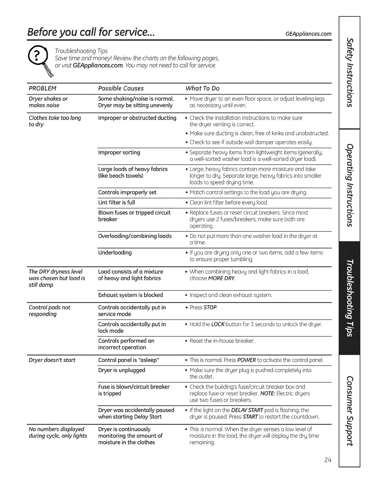 GE DBVH520GJ3WW User Manual GAS DRYER Manuals And Guides L1003260