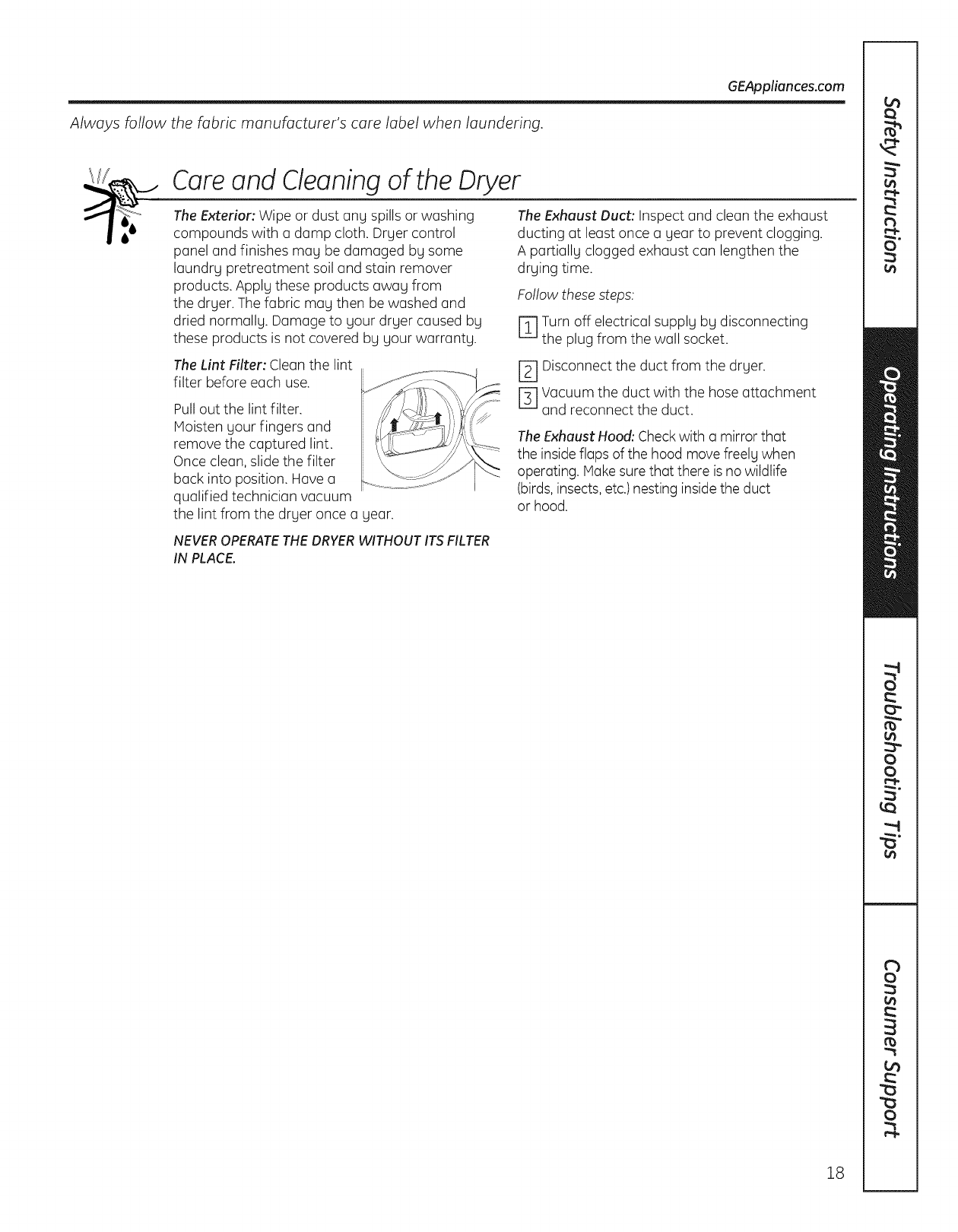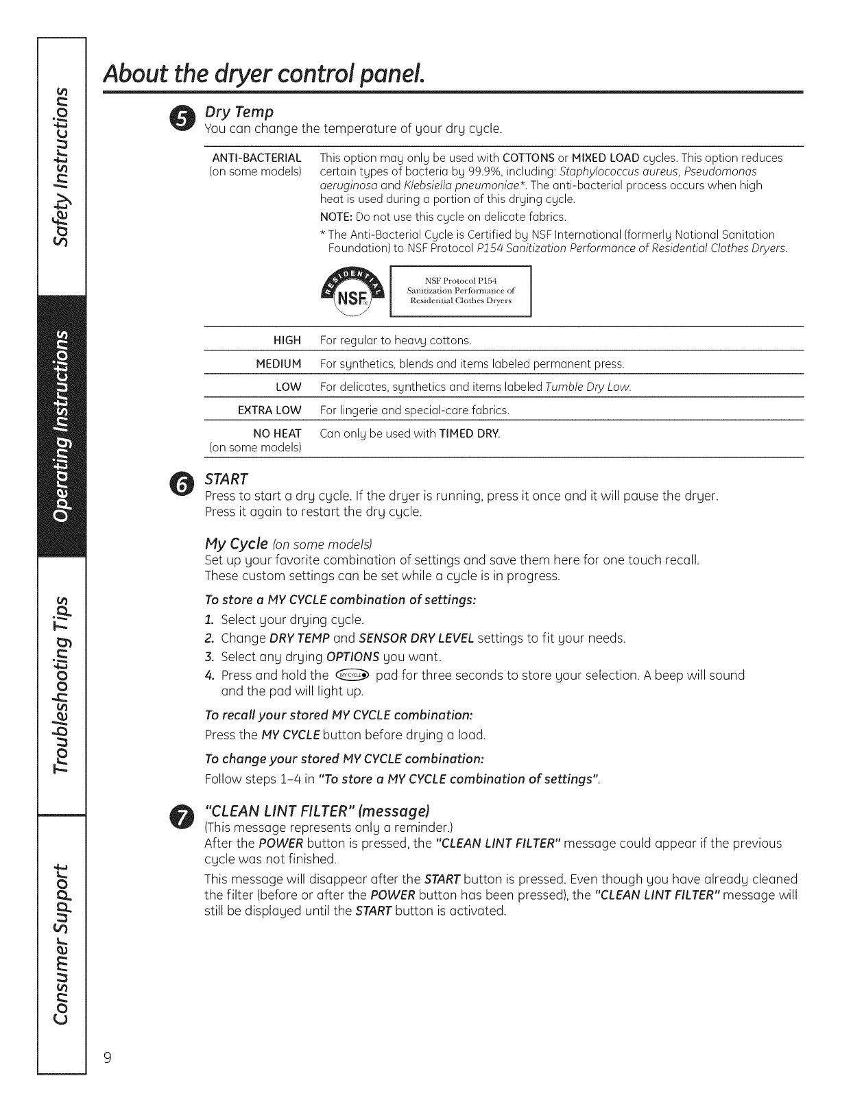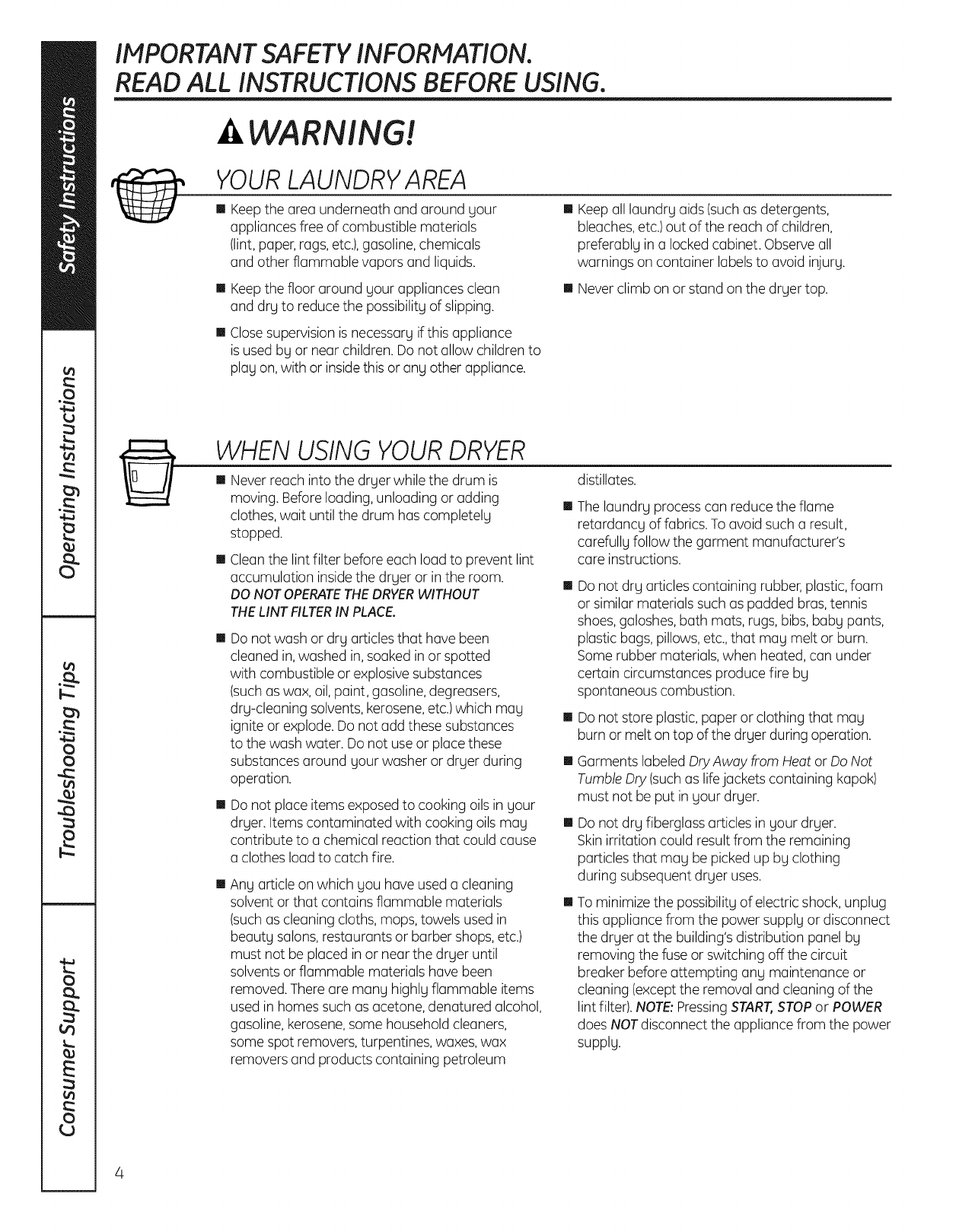 GE DBVH520GJ3WW User Manual GAS DRYER Manuals And Guides L1003260