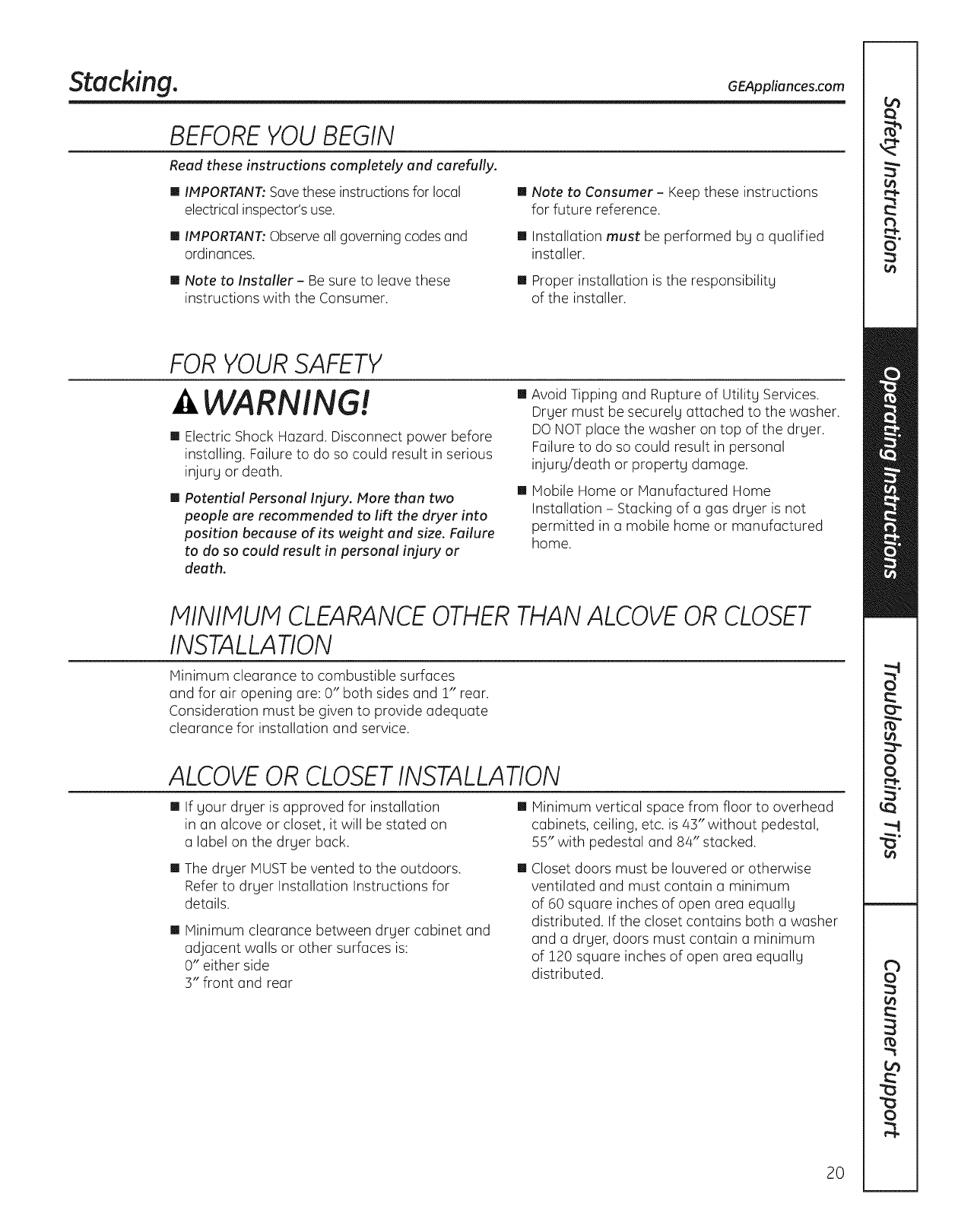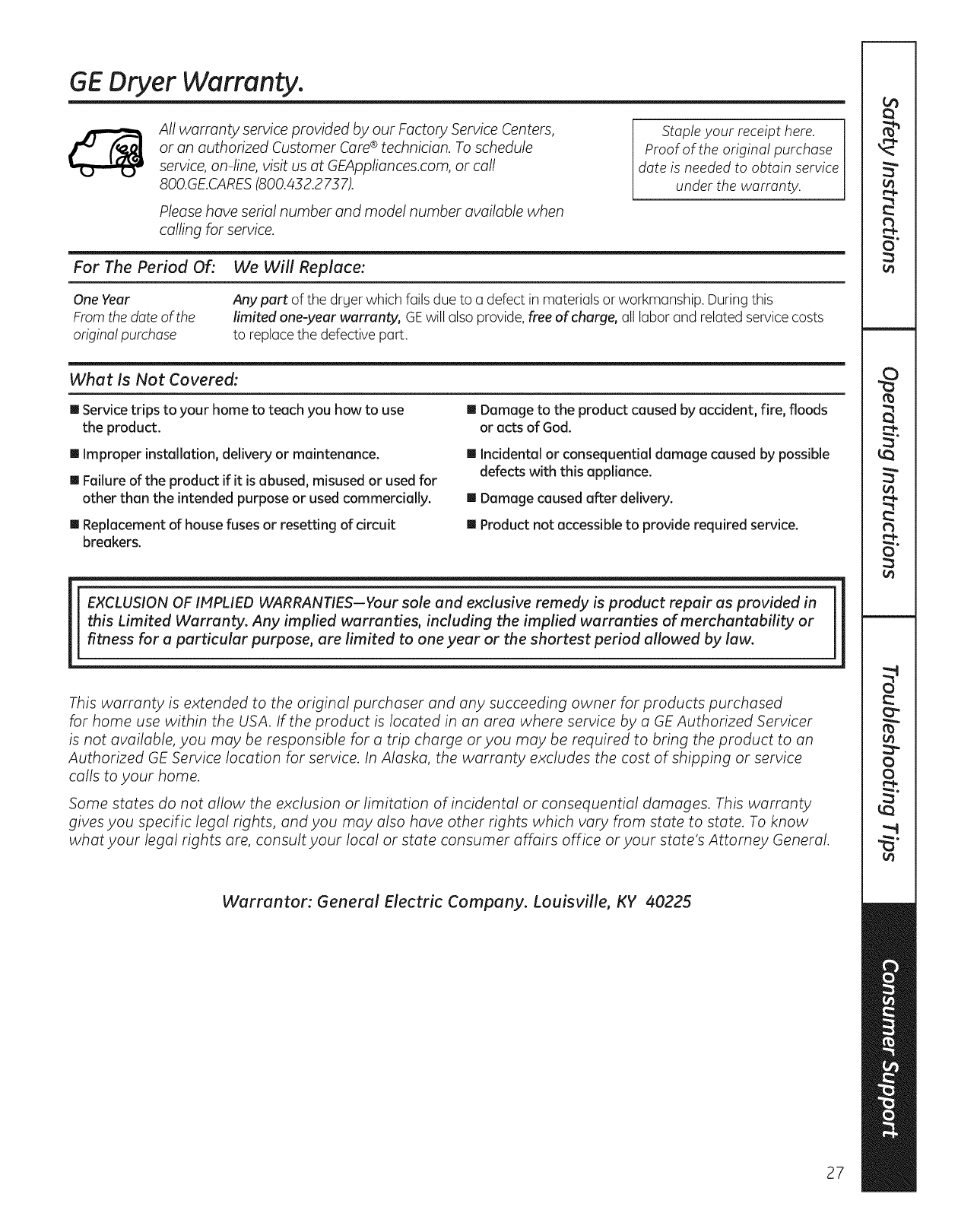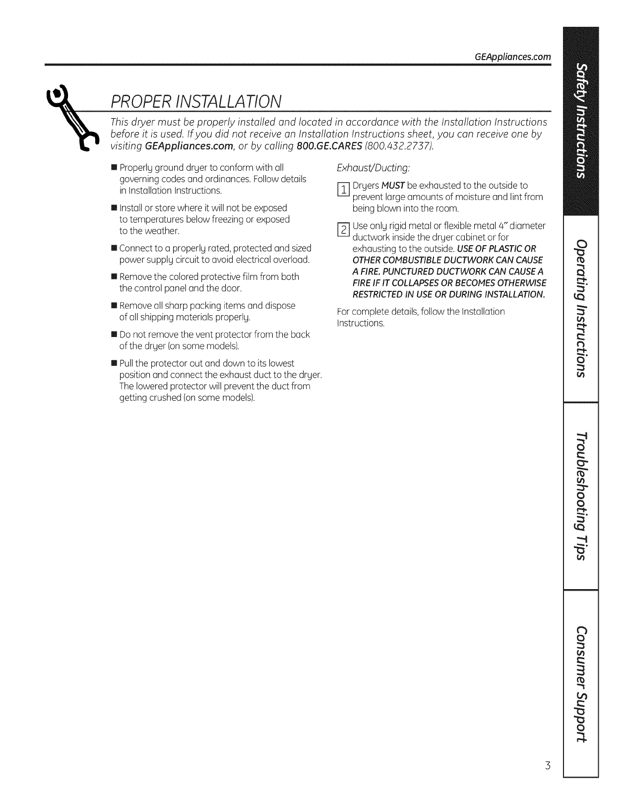 GE Residential Dryer Manual L1003260 GE Residential Dryer Owner's Manual, GE Residential Dryer installation guides