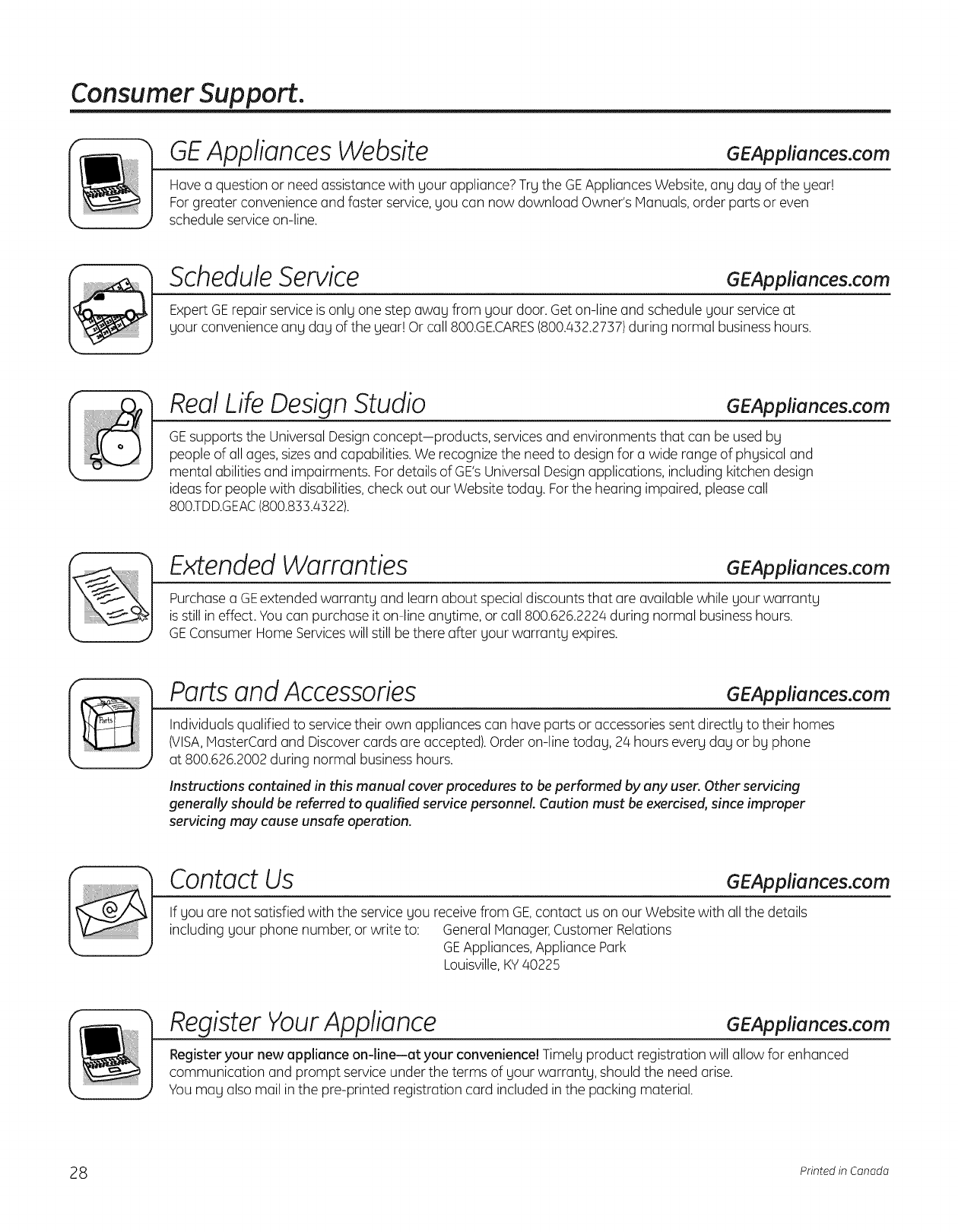 visiting GEAppliences.com, or by calling 800.GE.CARES (800.432.2737).