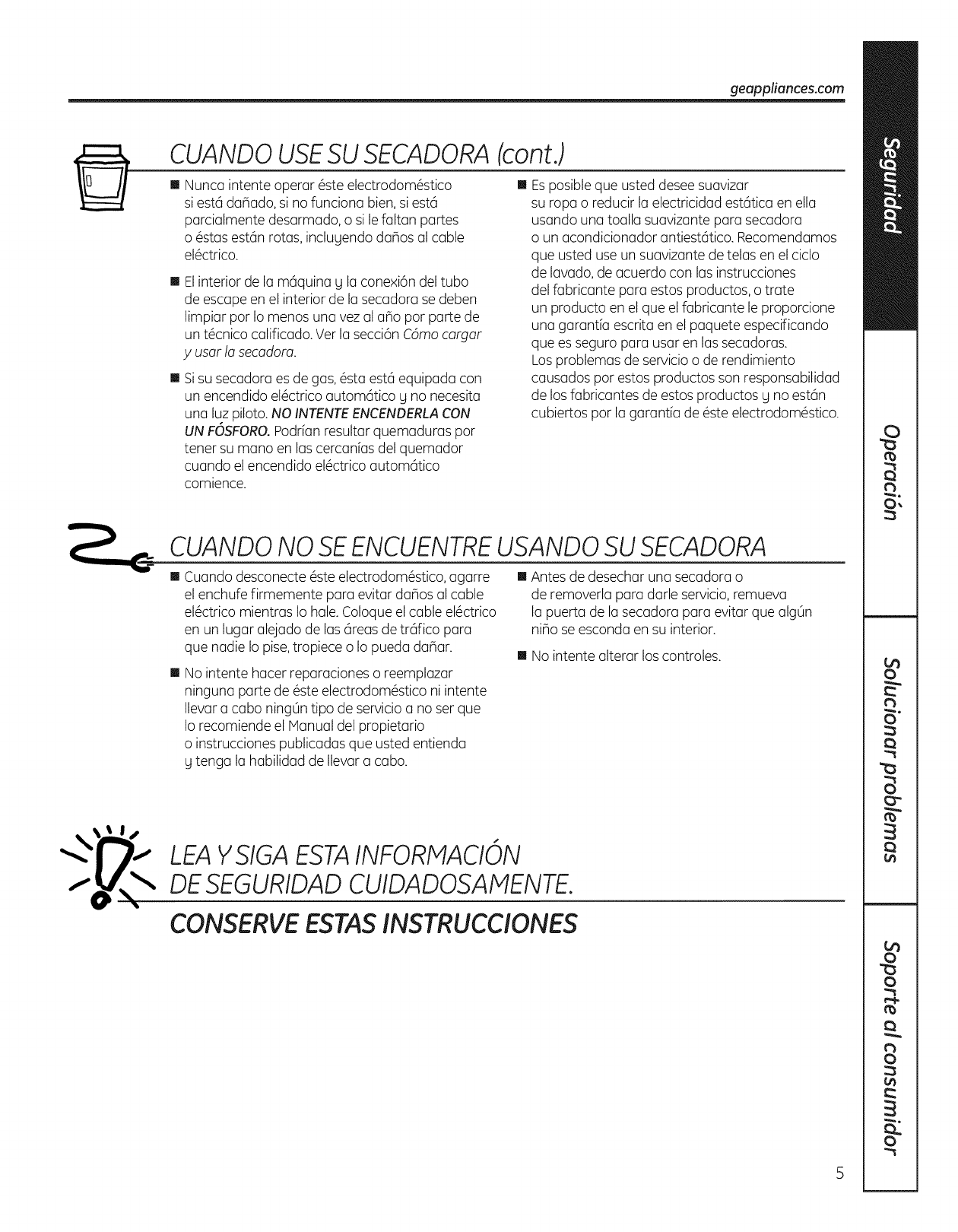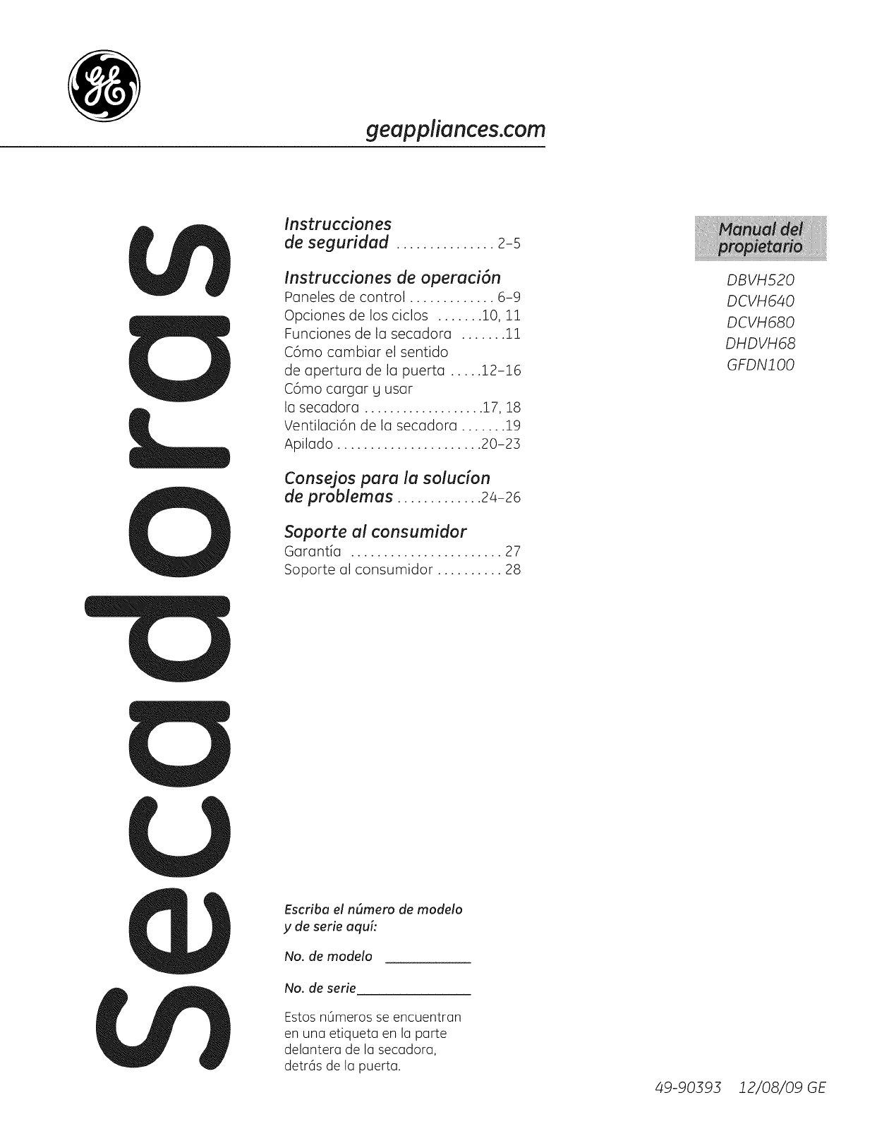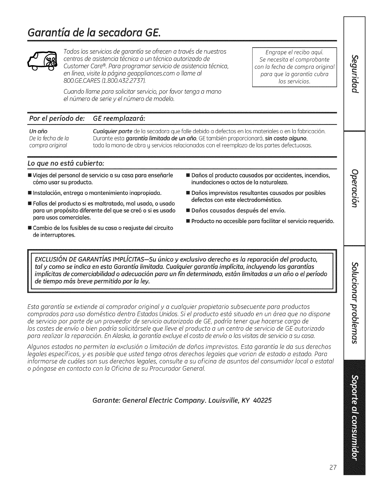 Garan6a de la secadora GE.