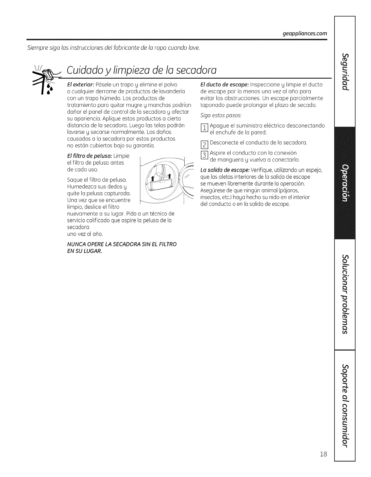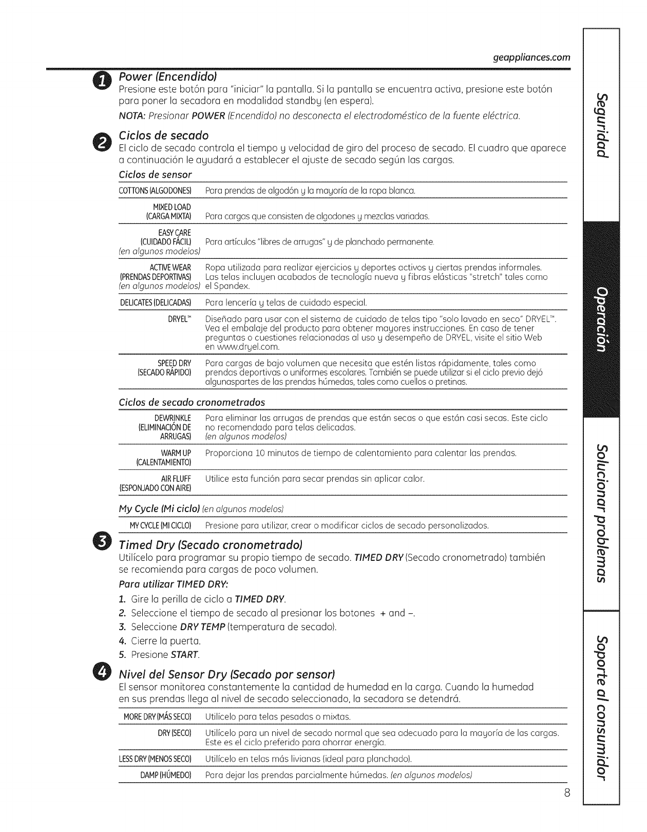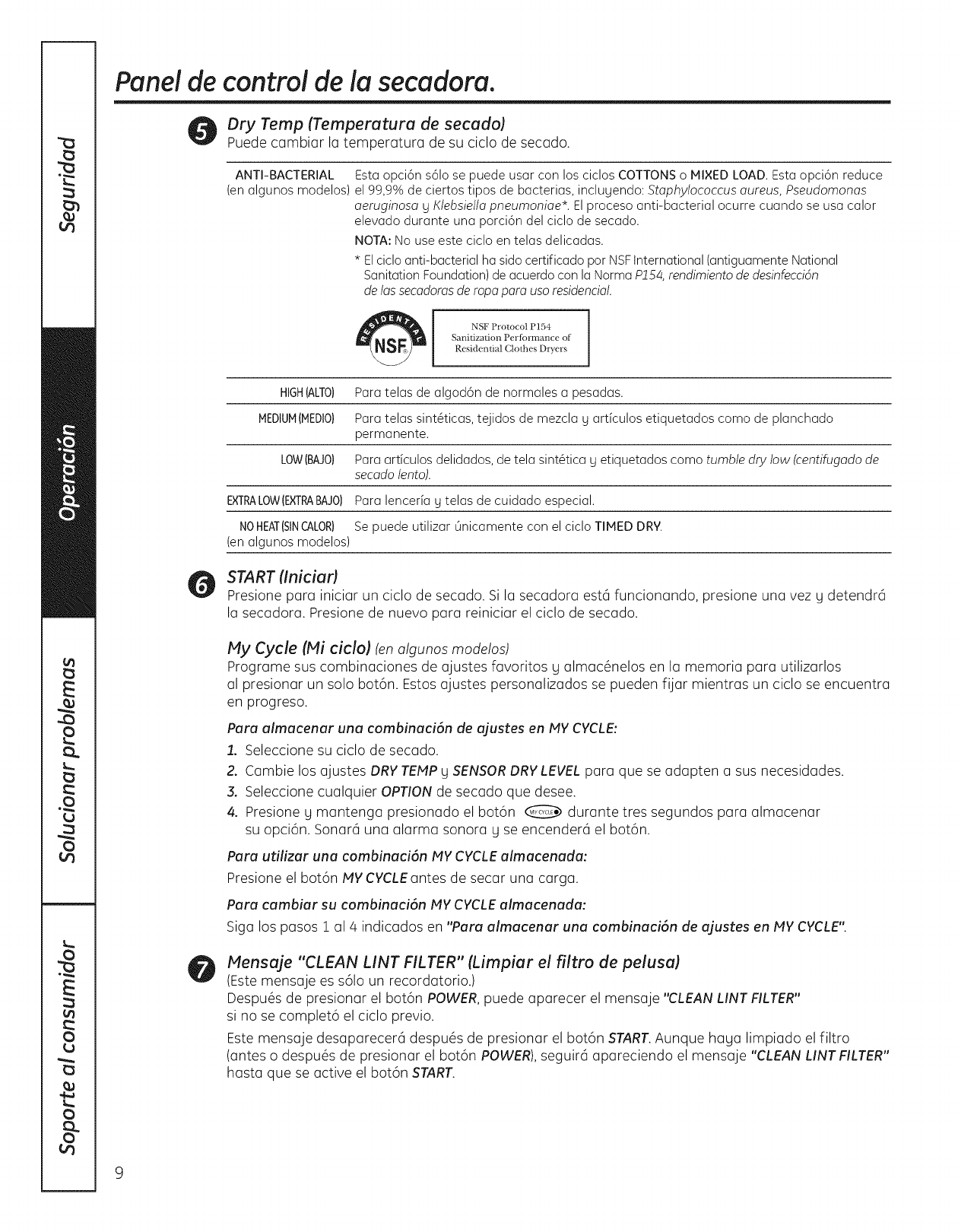 aprobado para ser usado con todas las SecadorasGE