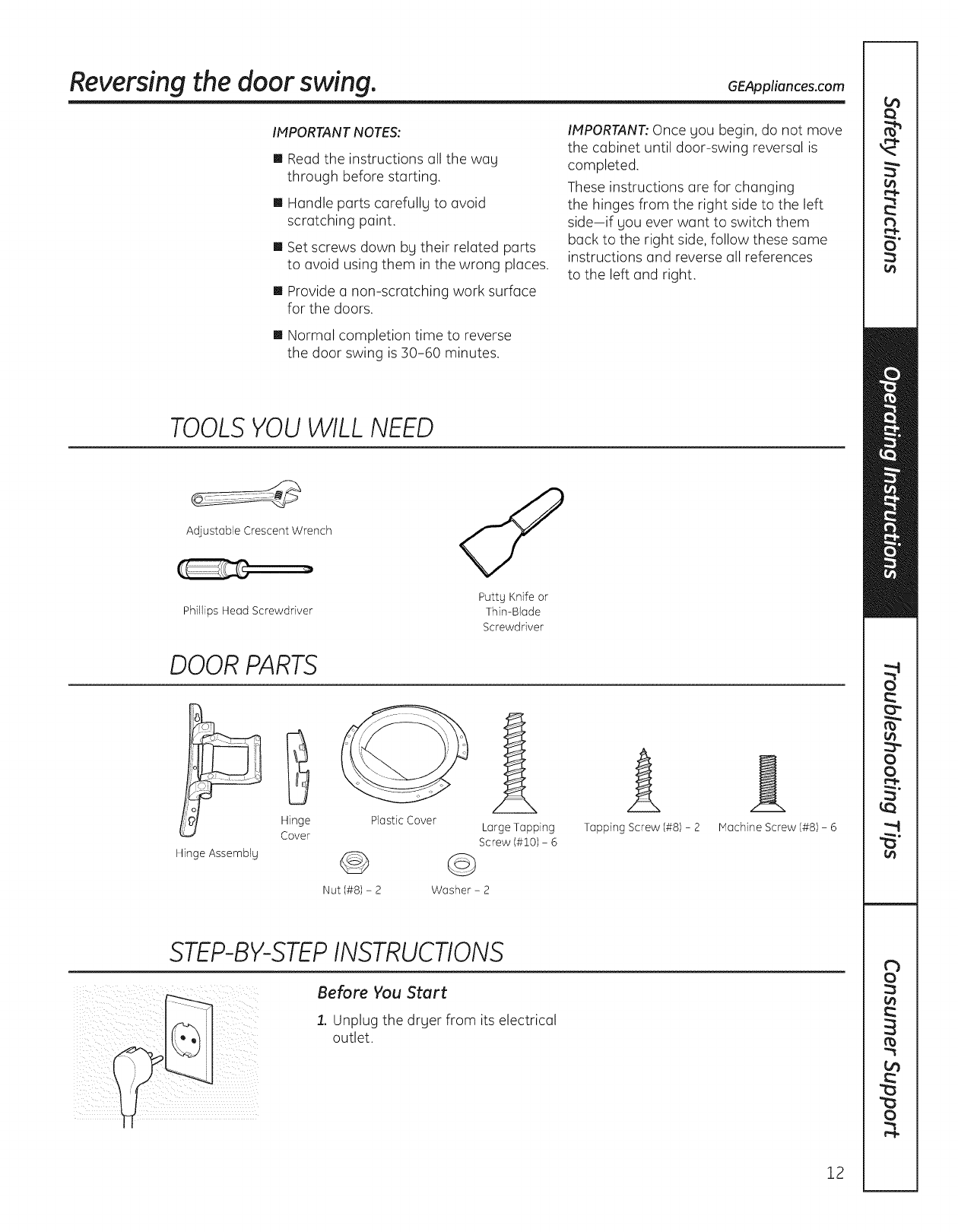 Reversing the Door Swing .... 12-16